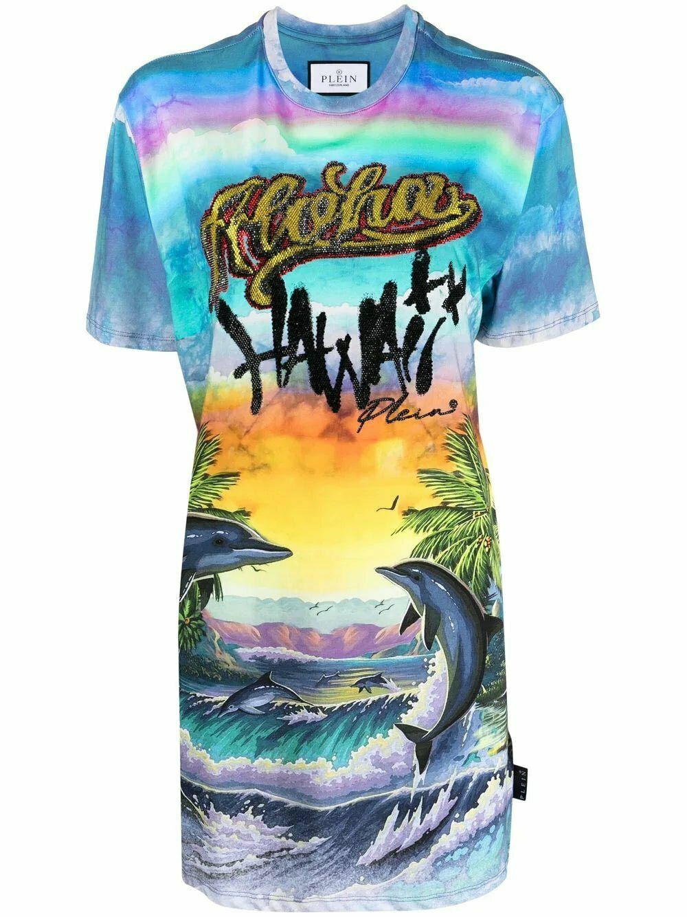graphic-print short-sleeved T-shirt from PHILIPP PLEIN featuring multicolour, cotton, all-over graphic print, crew neck, short sleeves and straight hem.