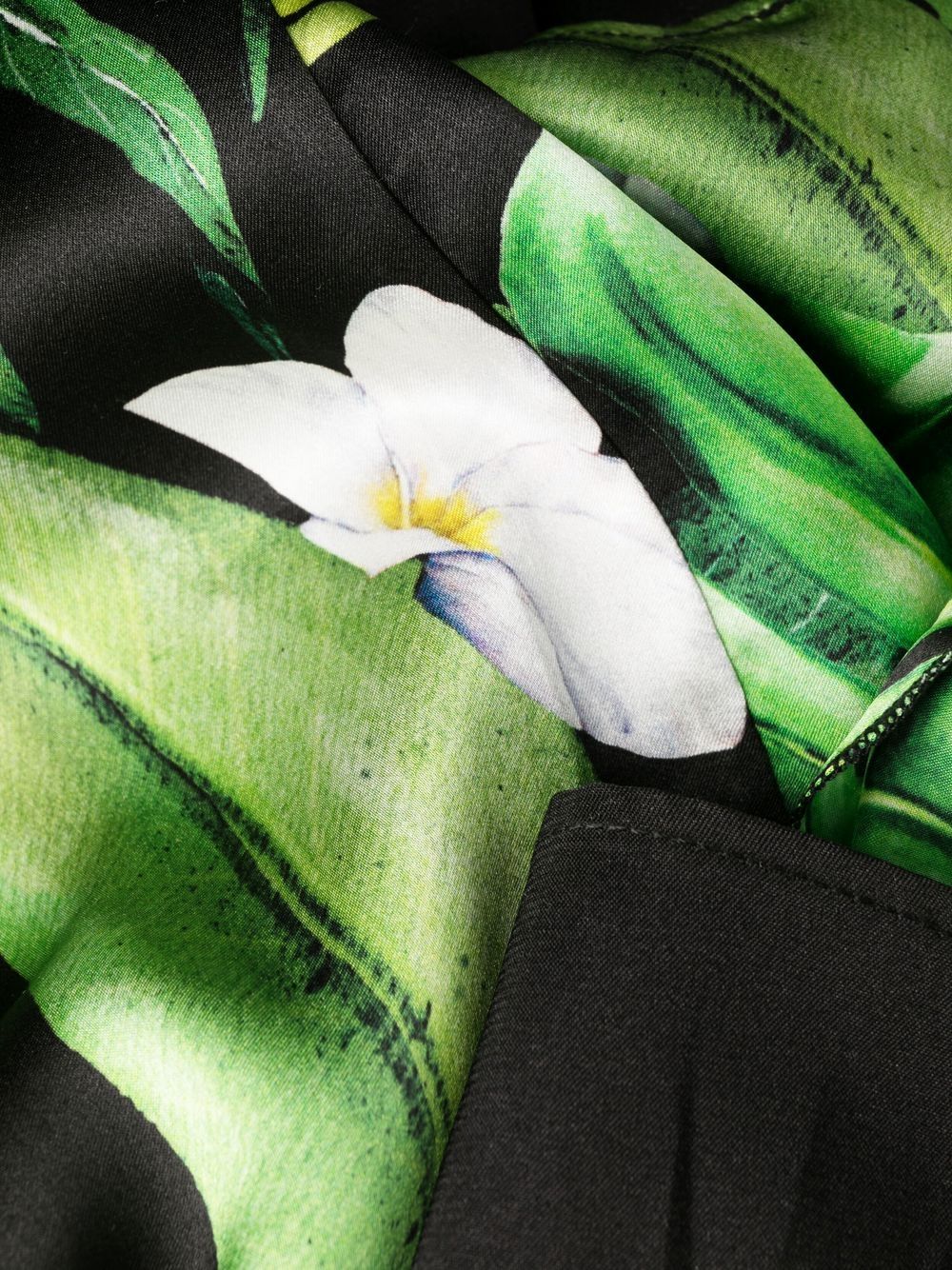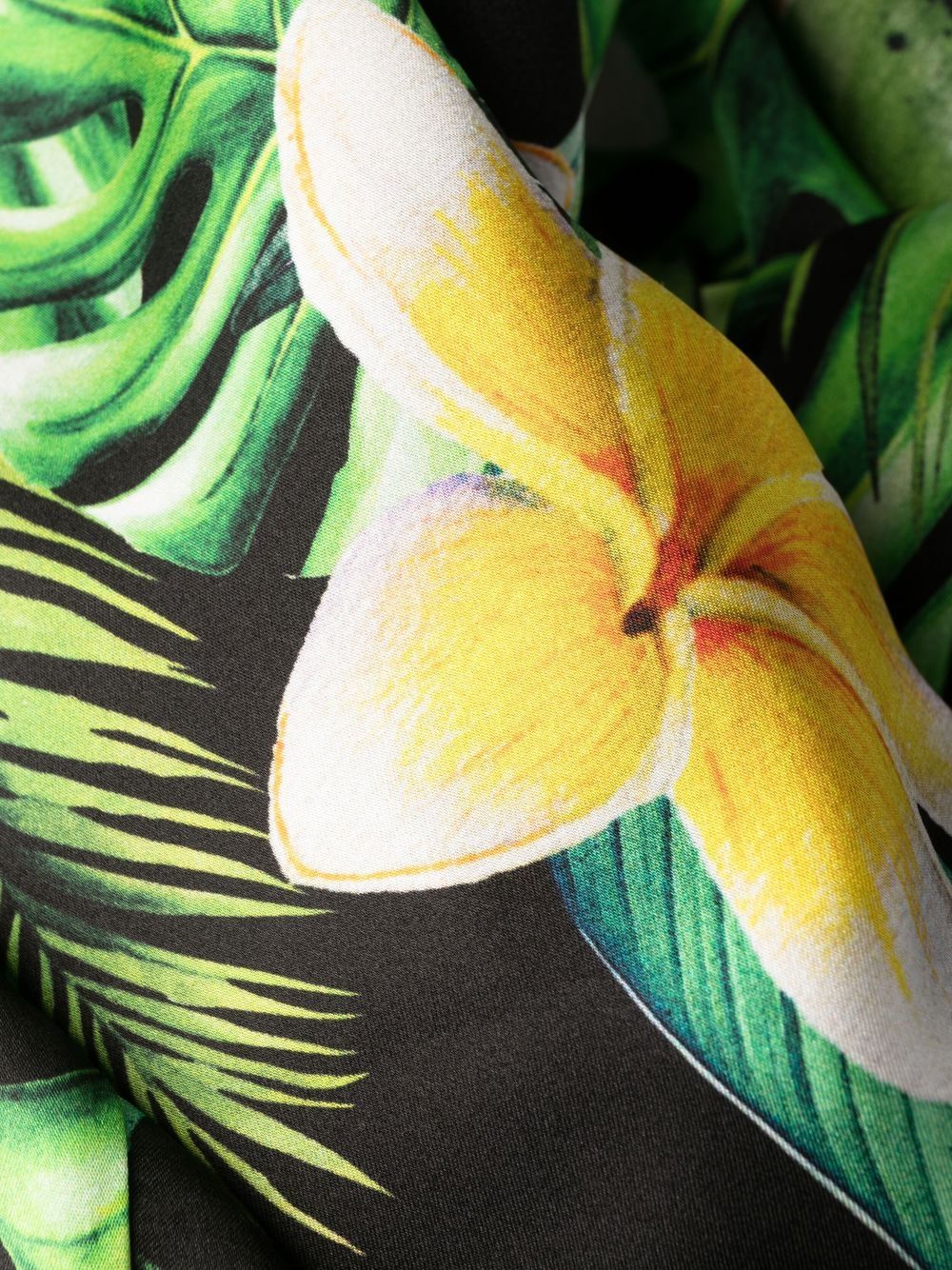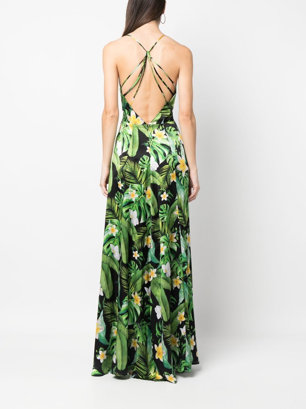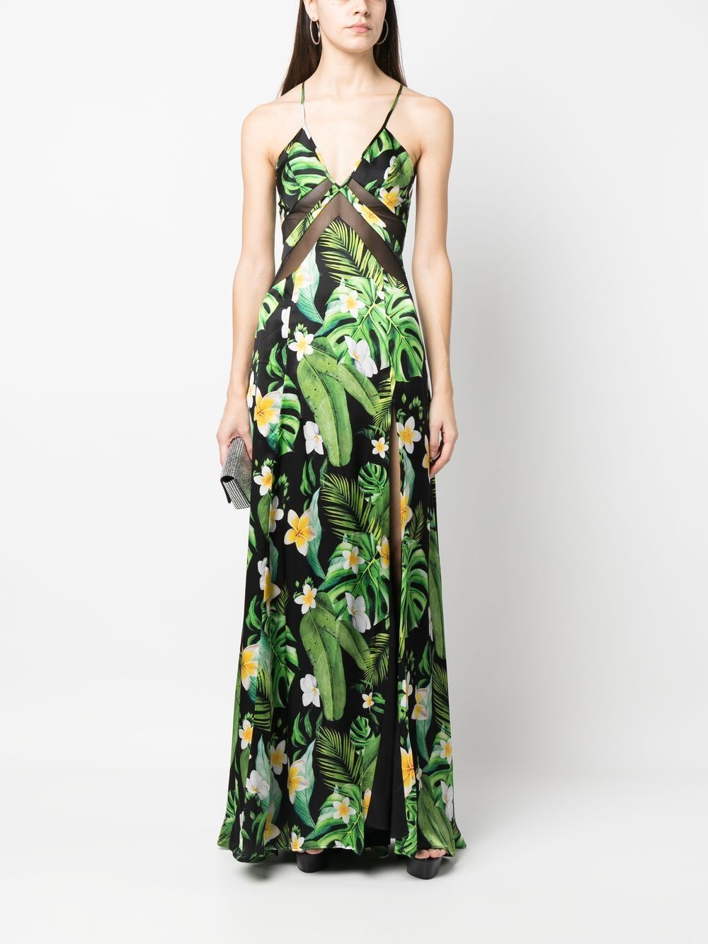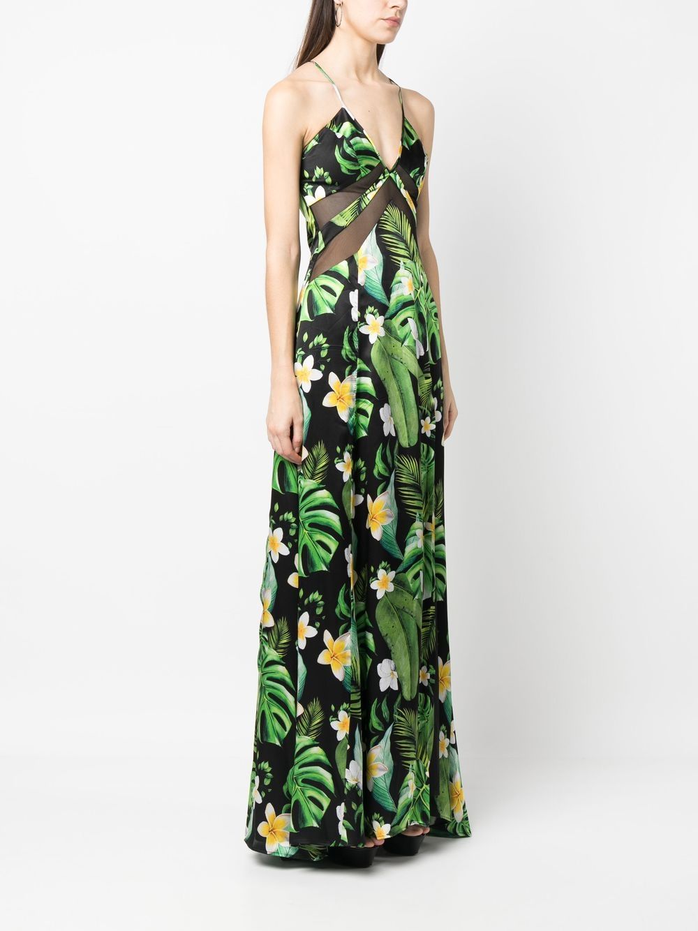 grass green/black/white/yellow silk all-over graphic print all-over floral print sheer panelling V-neck spaghetti straps low back maxi