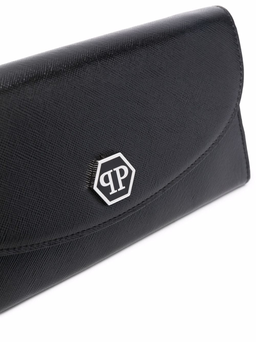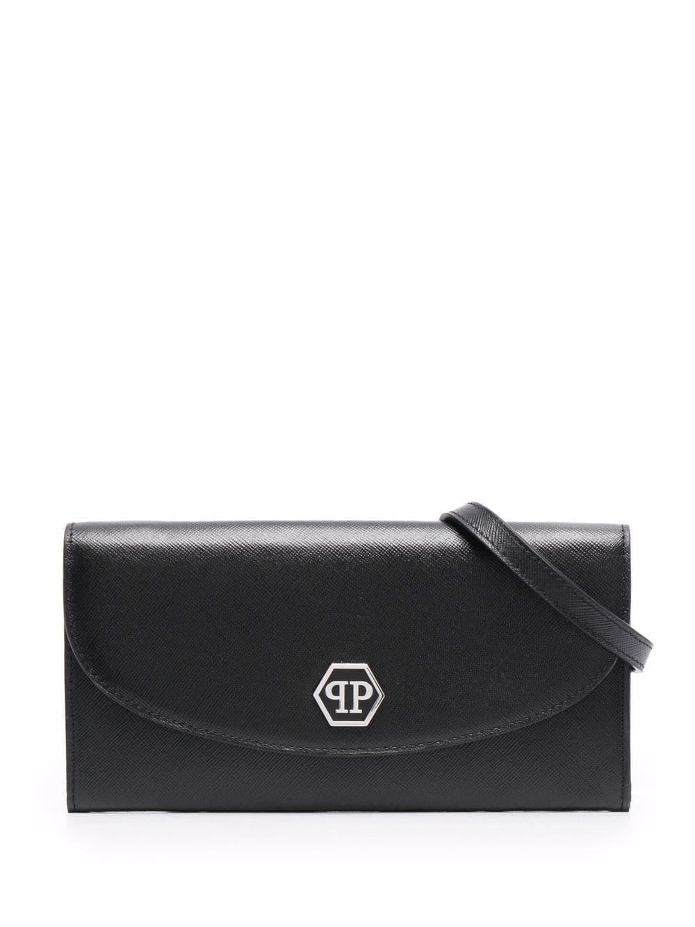 black calf leather logo plaque foldover top with magnetic fastening internal card slots internal zip-fastening pocket detachable strap