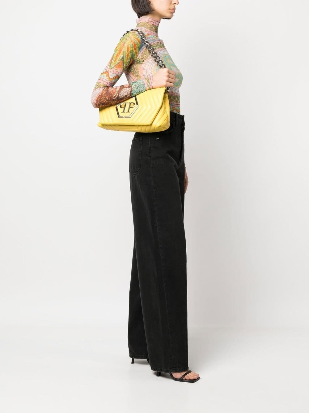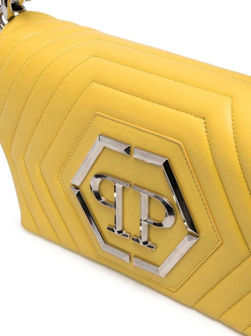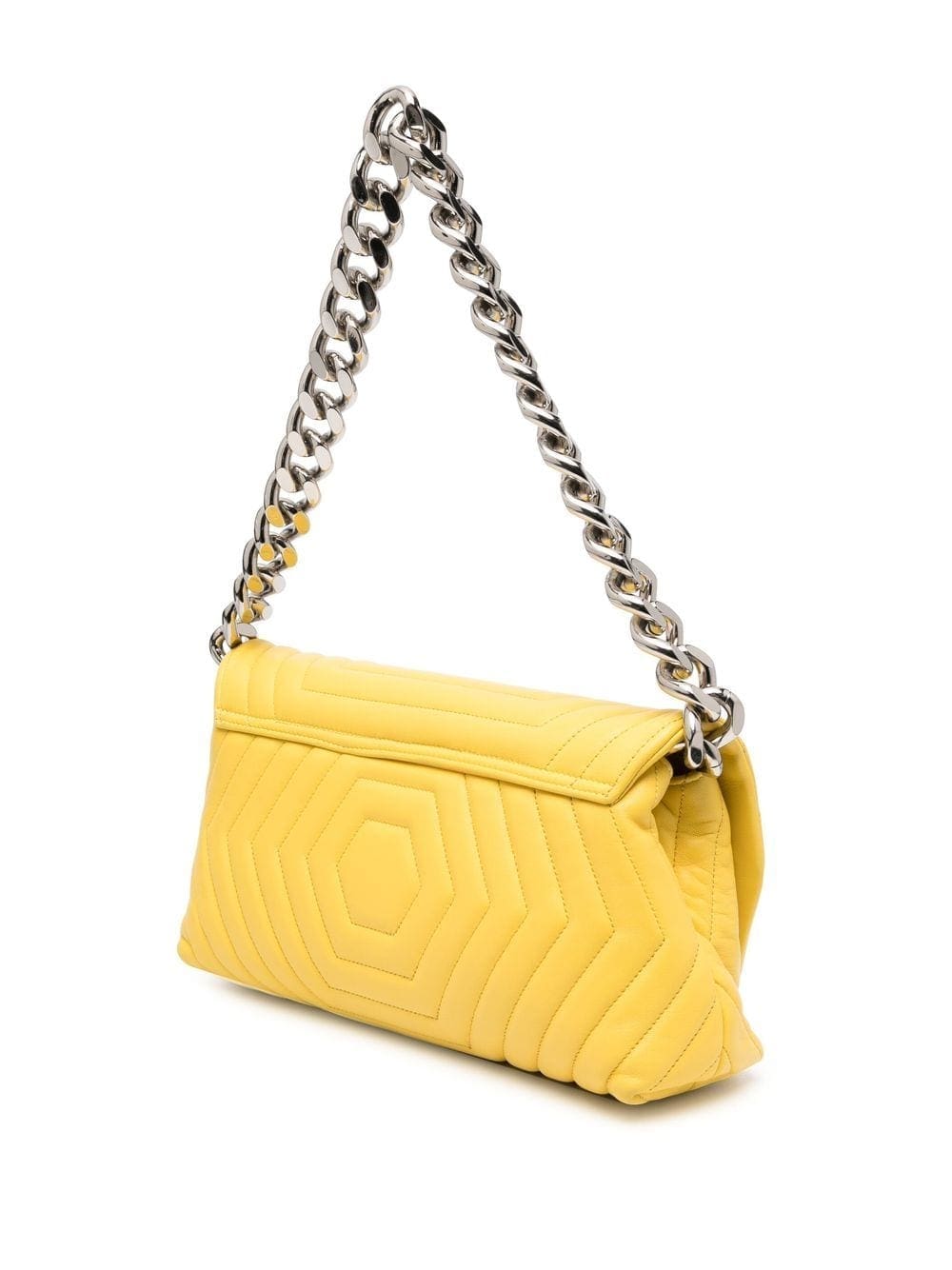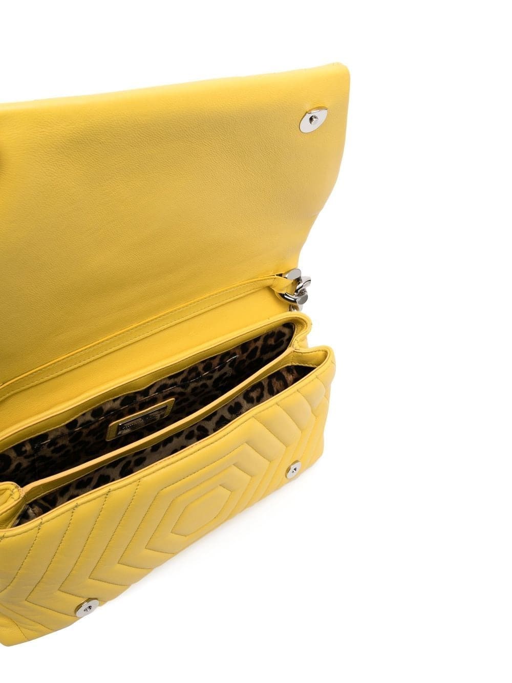 yellow nappa leather quilted silver-tone logo plaque foldover top with magnetic fastening chunky-chain shoulder strap partitioned compartment leopard print lining internal slip pocket internal logo plaque