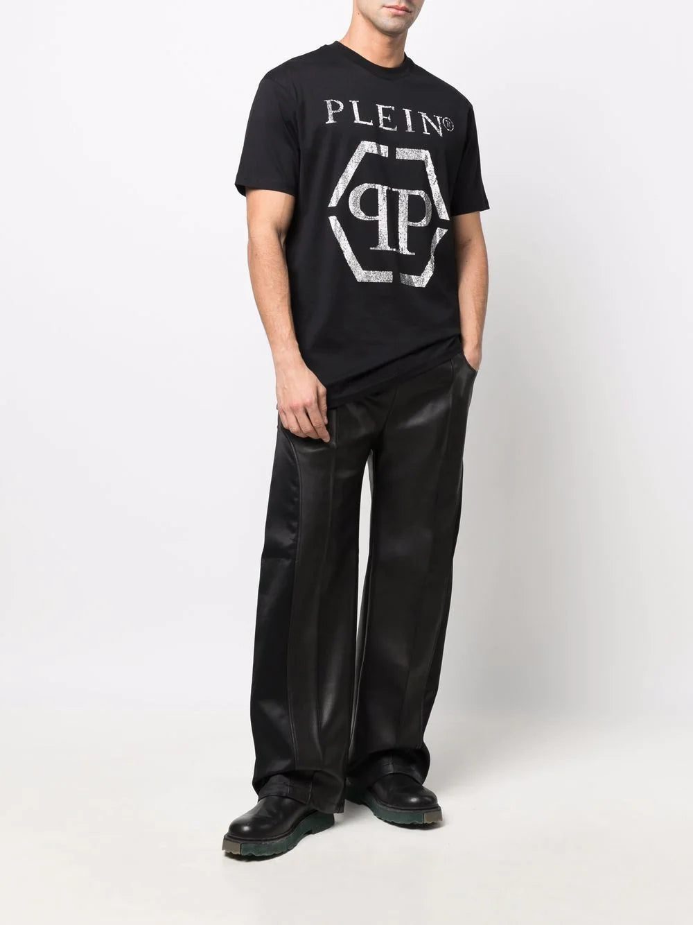A hexagon logo adorns the front of this short-sleeve T-shirt from Philipp Plein. The round-neck casual design is made from comfortable cotton.
