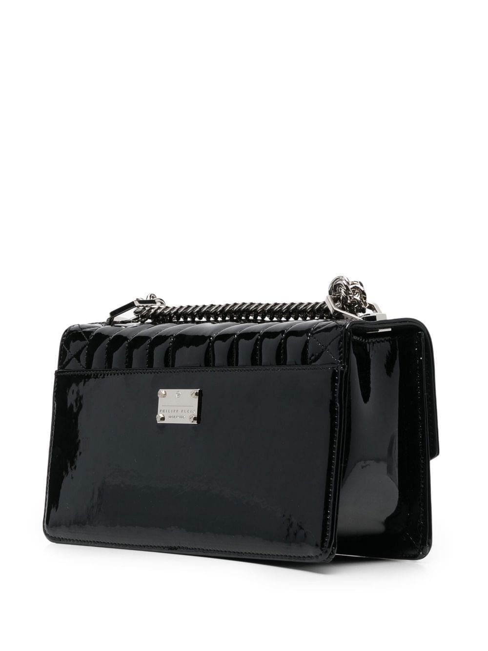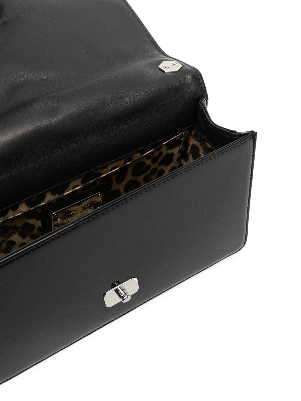 black calf leather textured finish foldover top with press-stud fastening silver-tone hardware adjustable detachable shoulder strap
