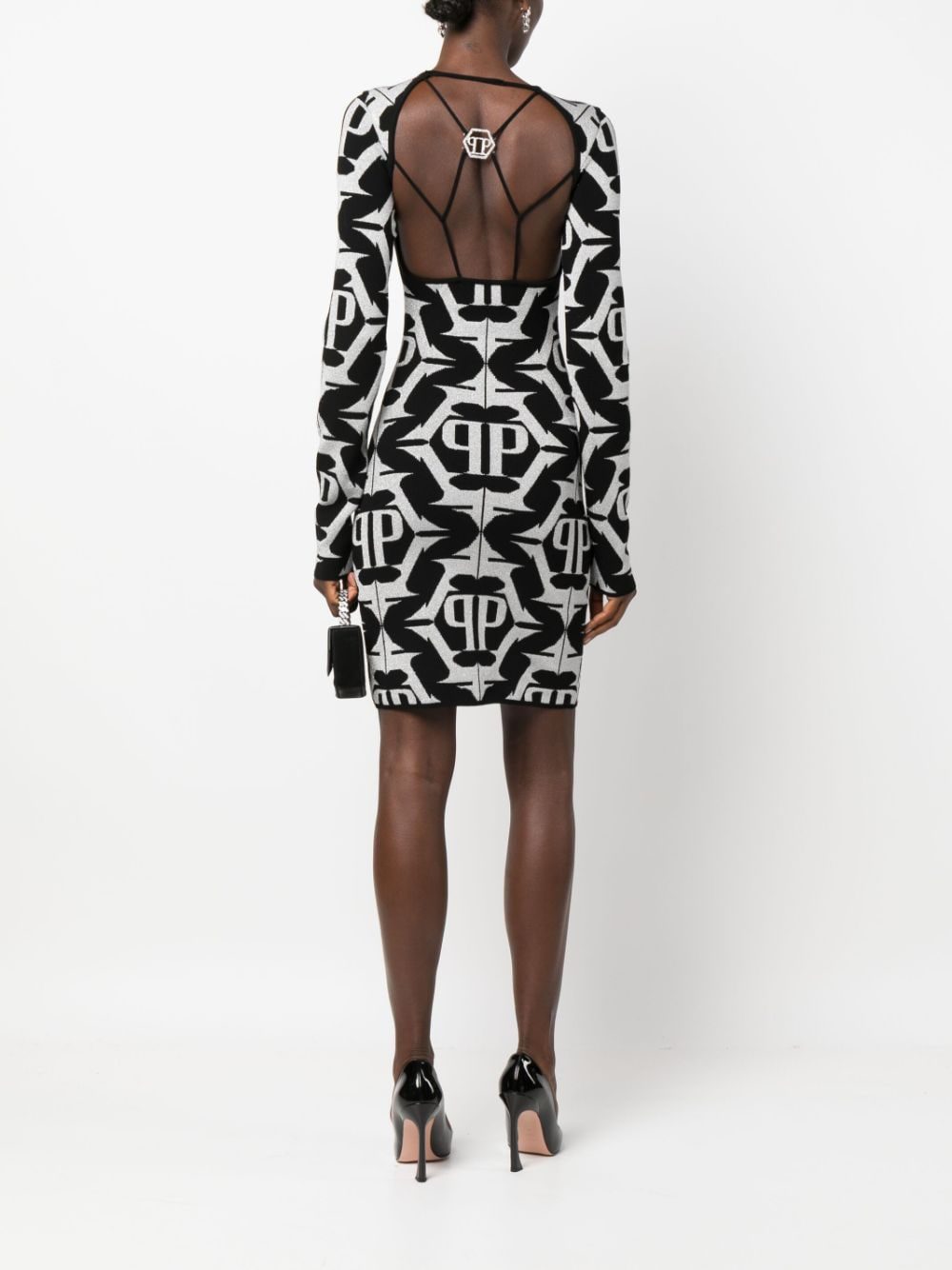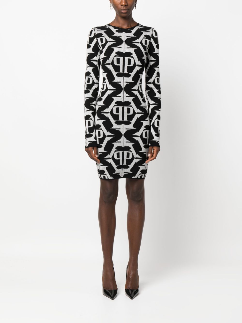 Philipp Plein Hexagon monogram-jacquard lurex minidress
