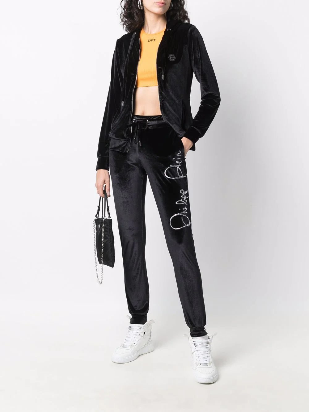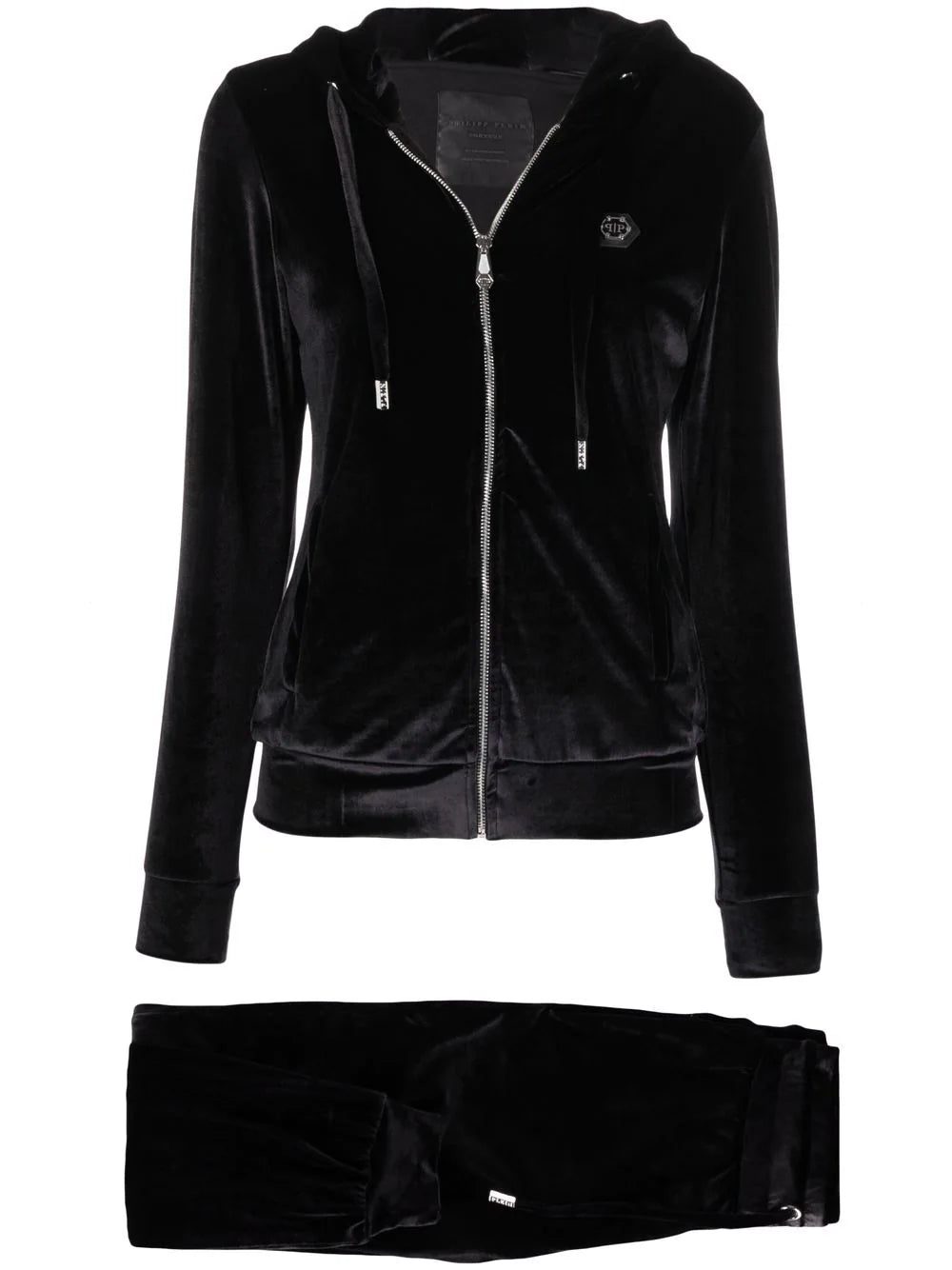 Constructed in a tonal design and with a focus on tactility, this Philipp Plein tracksuit is designed in a velvet-effect fabrication and adorned with a logo patch at the chest.