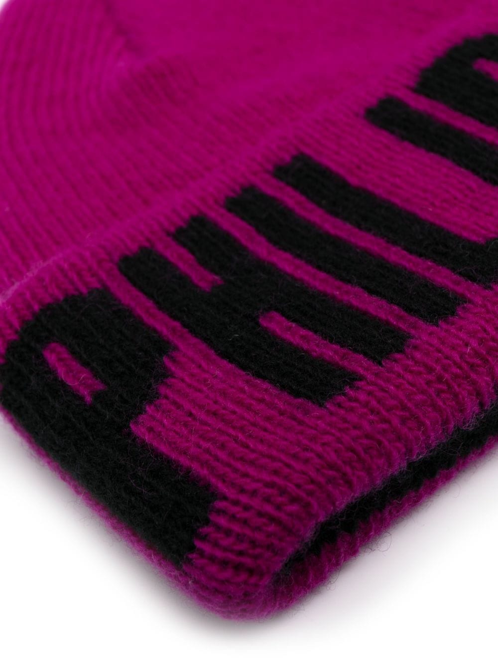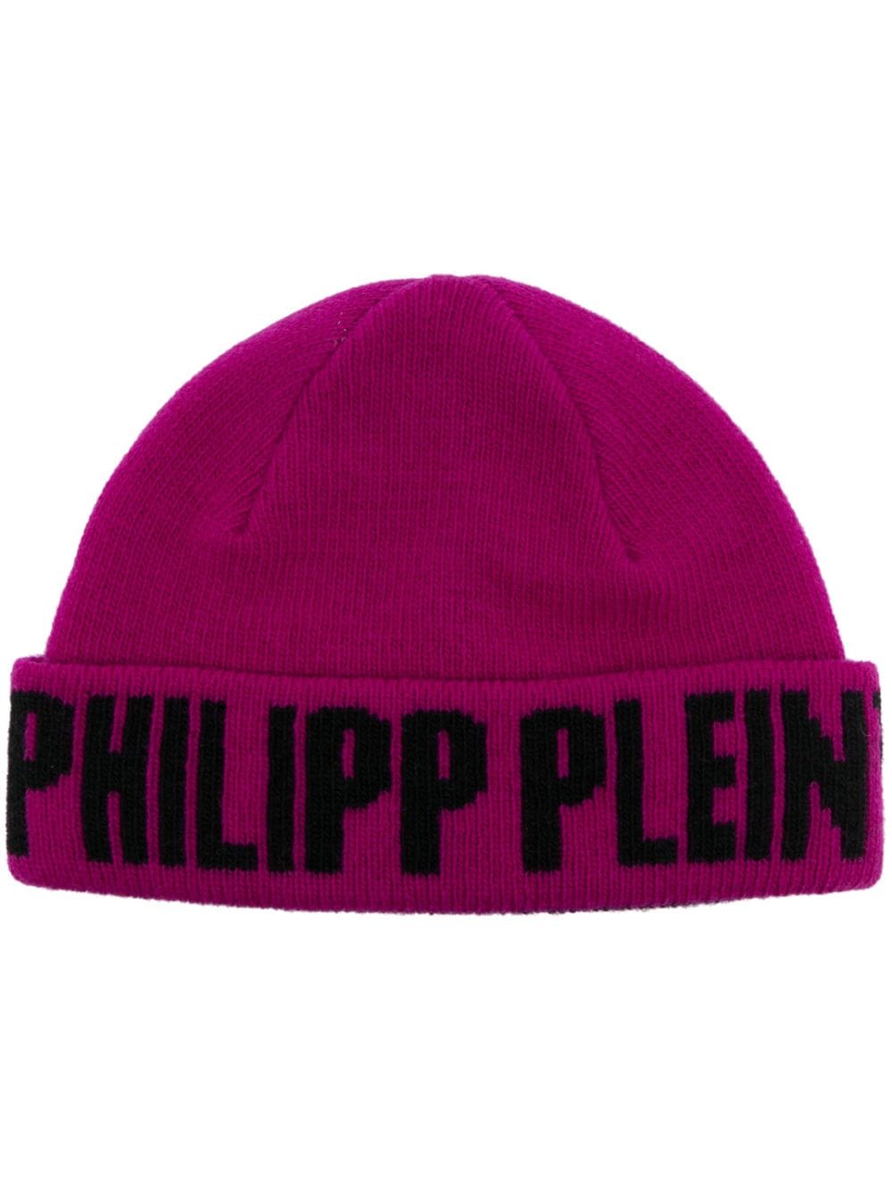 Philipp Plein jacquard beanie from PHILIPP PLEIN featuring fuchsia pink, embroidered logo to the front, embroidered logo to the rear, jacquard logo motif, turn-up hem and wool.