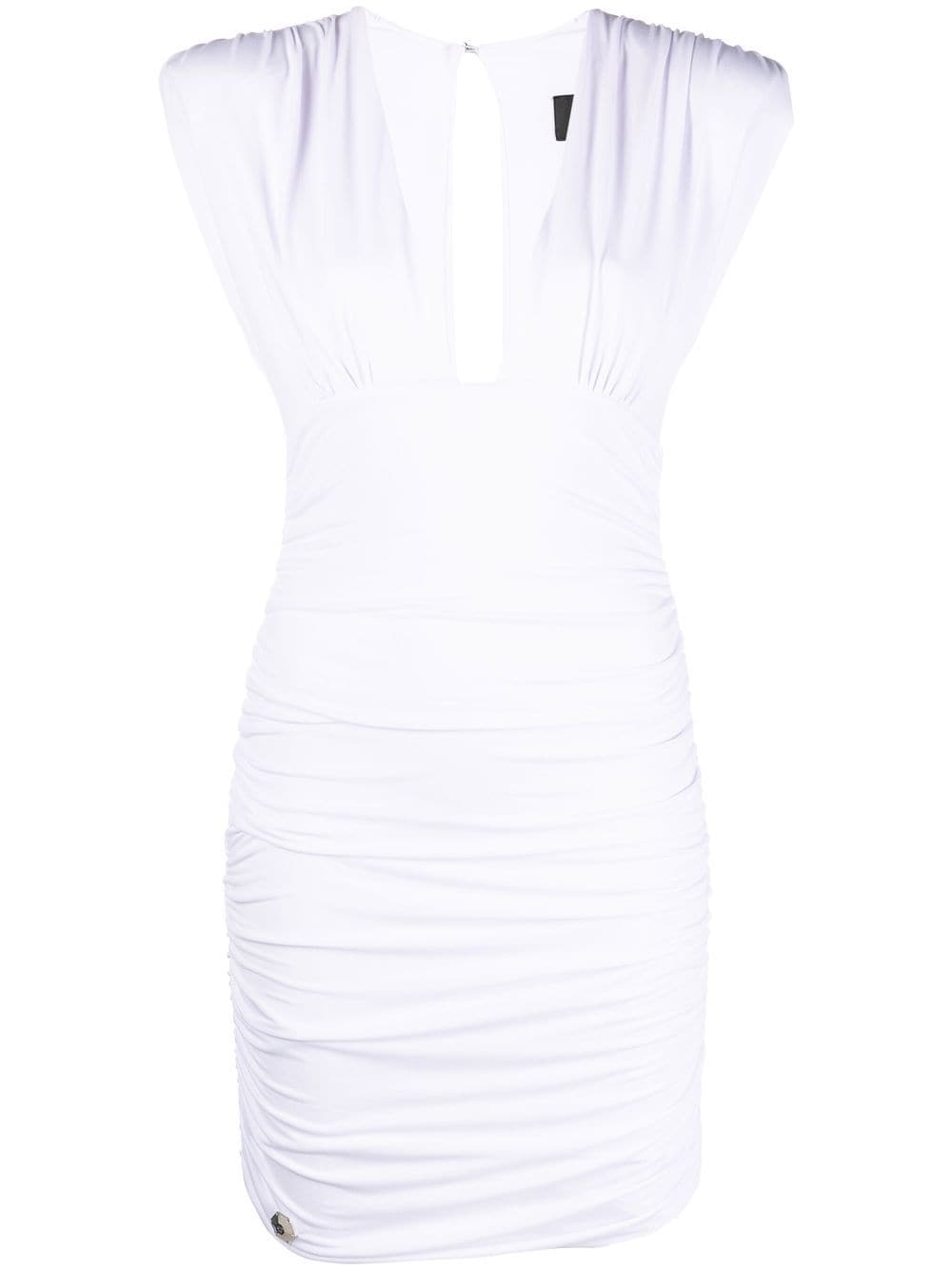 plunge-neck ruched mini dress