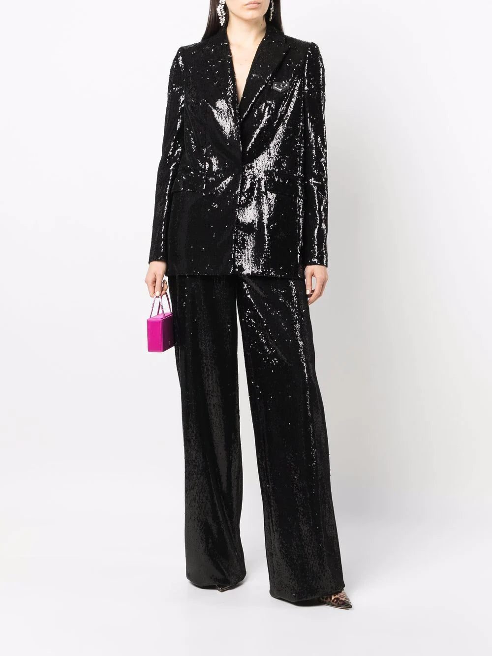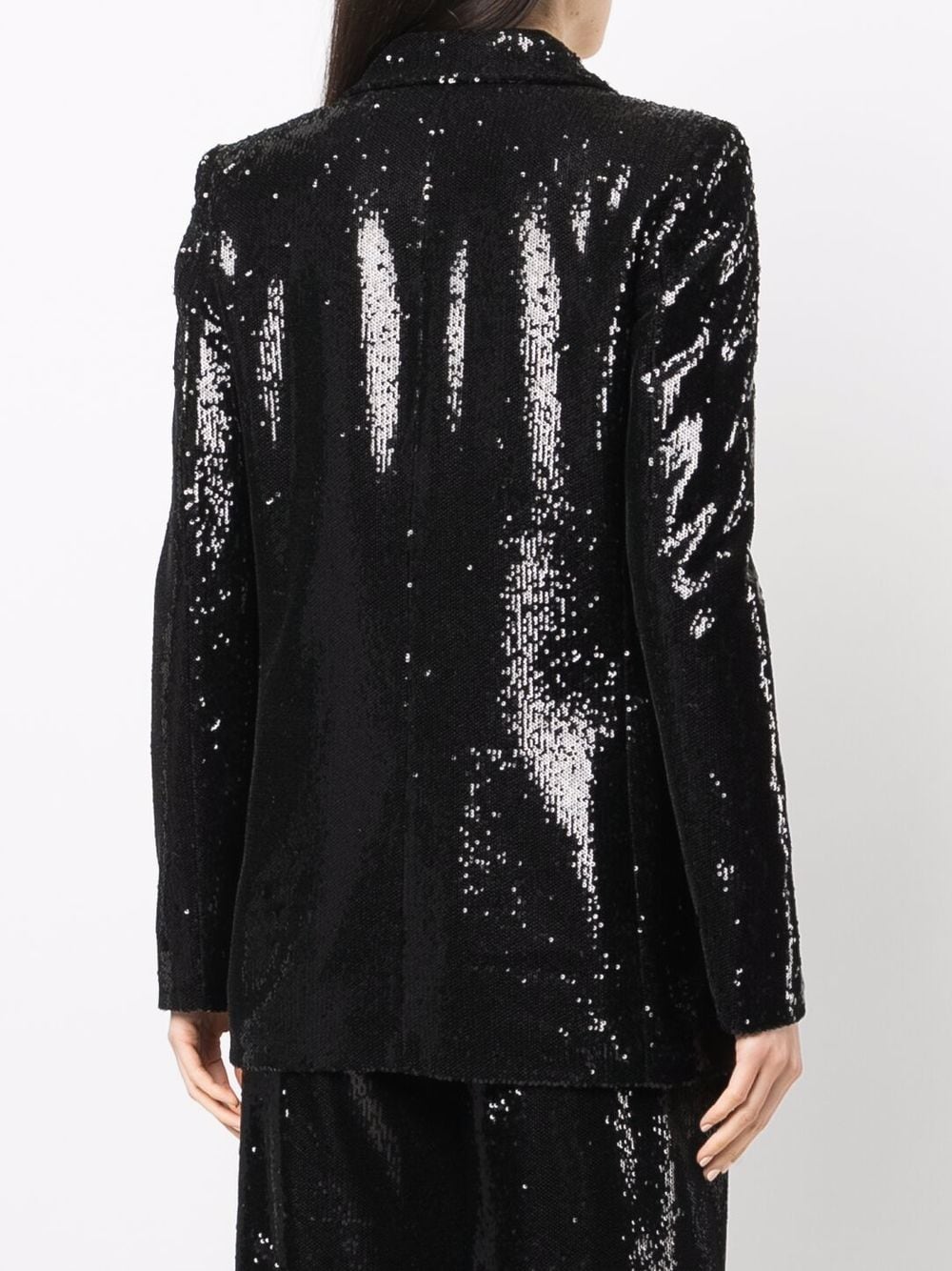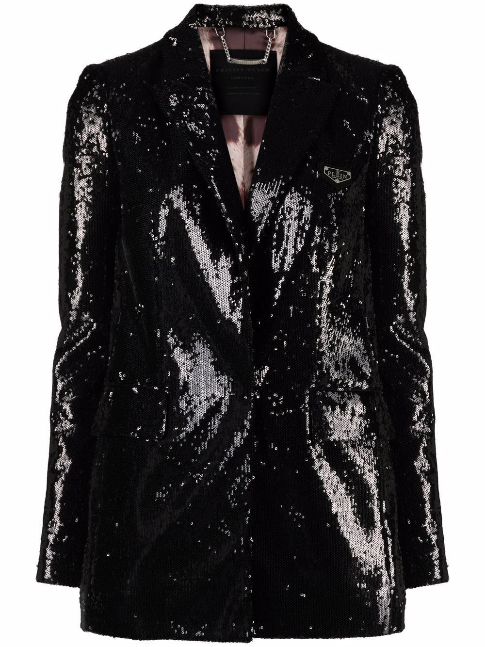 Black sequin-embellished blazer from PHILIPP PLEIN featuring sequin embellishment, front button fastening, V-neck, long sleeves and straight hem.