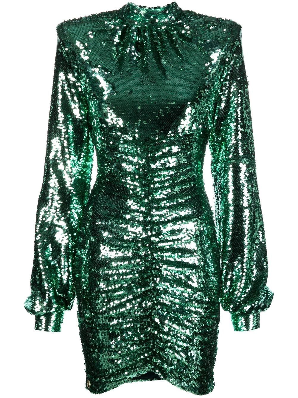 Synonymous with extravagant detailing, Philipp Plein presents this dress. The eye-catching sequinned silhouette is complemented by a high-low hem and rear slit.