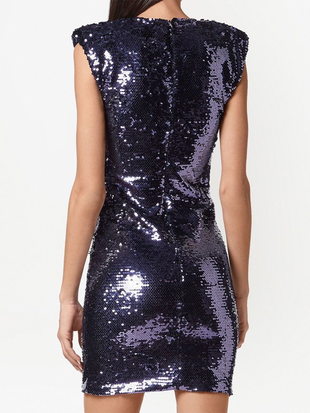 Taking sartorial cues from the '80s, this sleeveless dress from Philipp Plein offers all-over glimmering crystal embellishments and structured shoulder pads.
