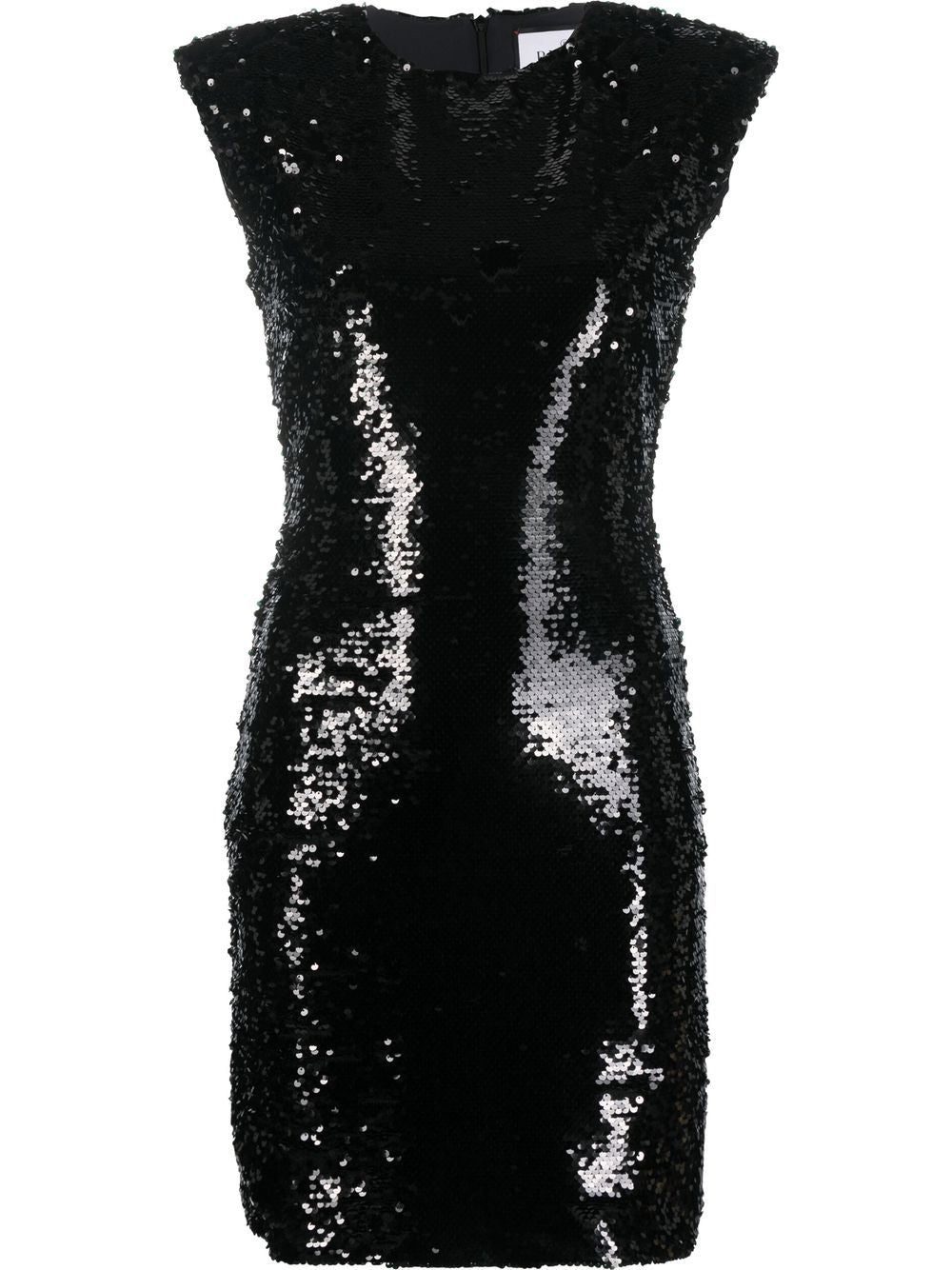 Taking sartorial cues from the '80s, this sleeveless dress from Philipp Plein offers all-over glimmering crystal embellishments and structured shoulder pads.
