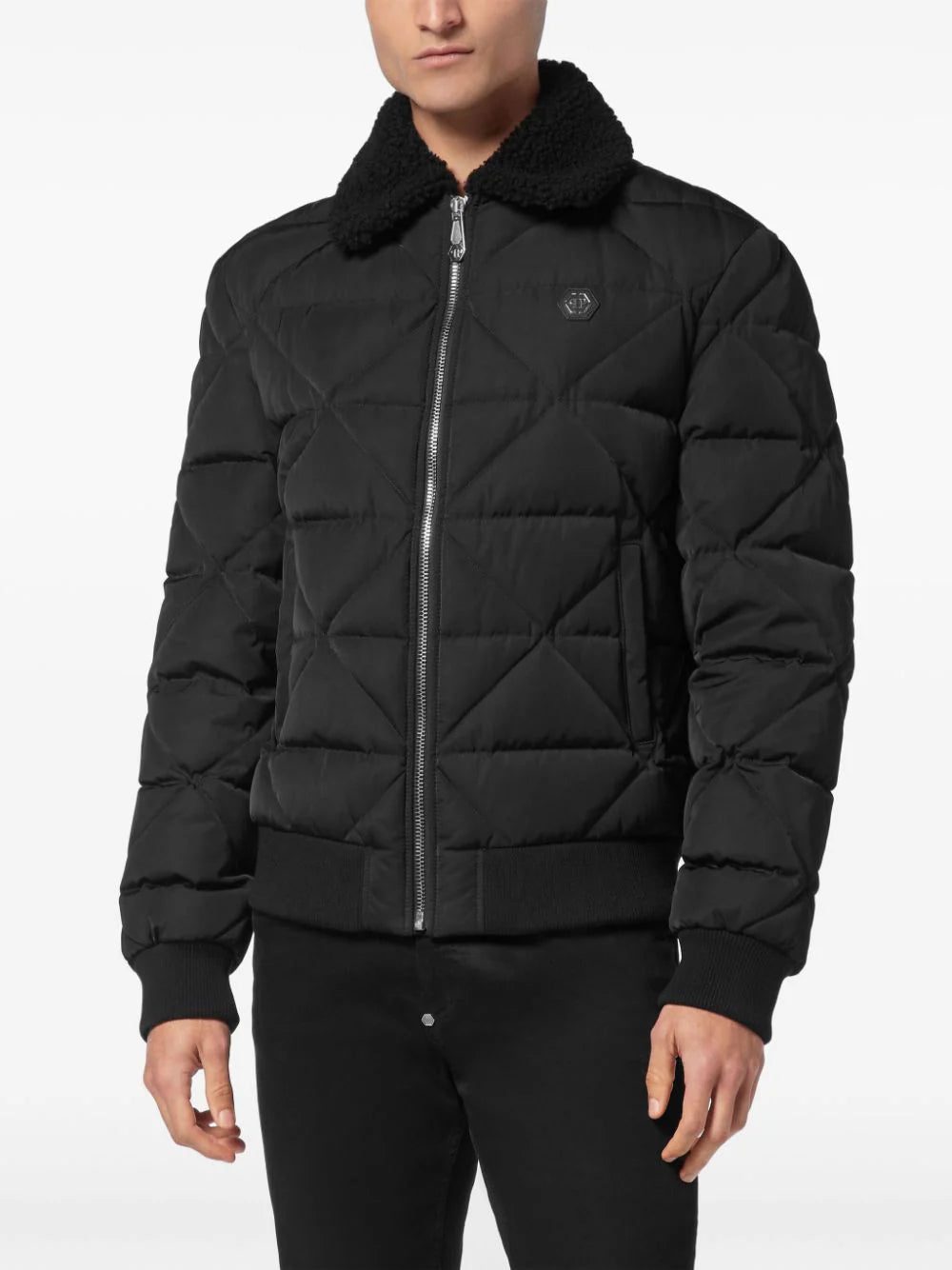 Philipp Plein logo-plaque leather bomber jacket