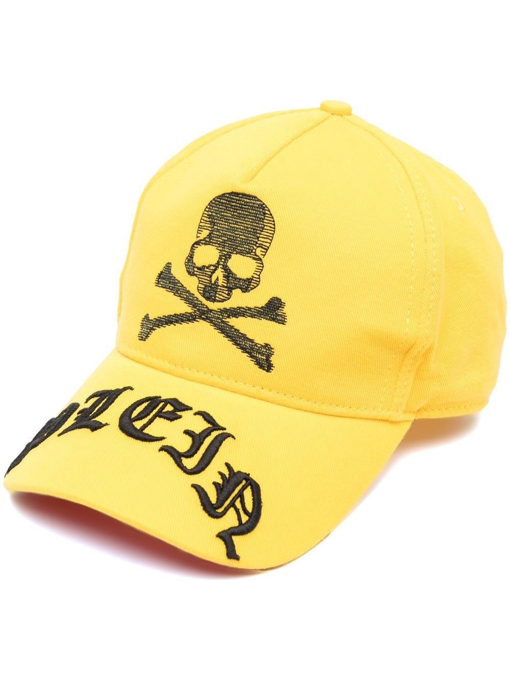 bright yellow cotton adjustable fit skull print embroidered logo to the front curved peak