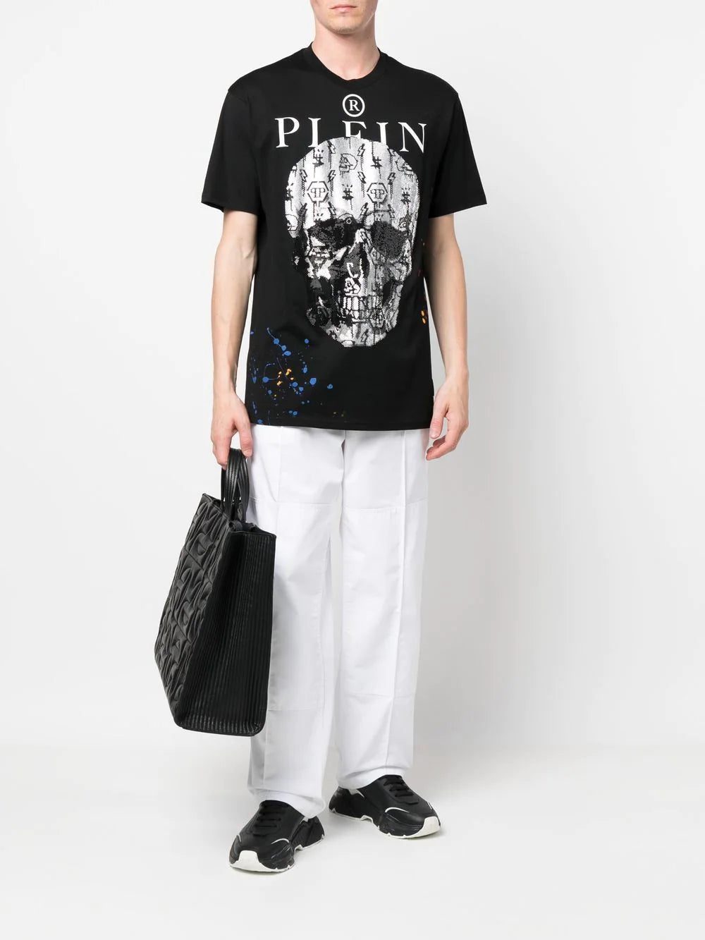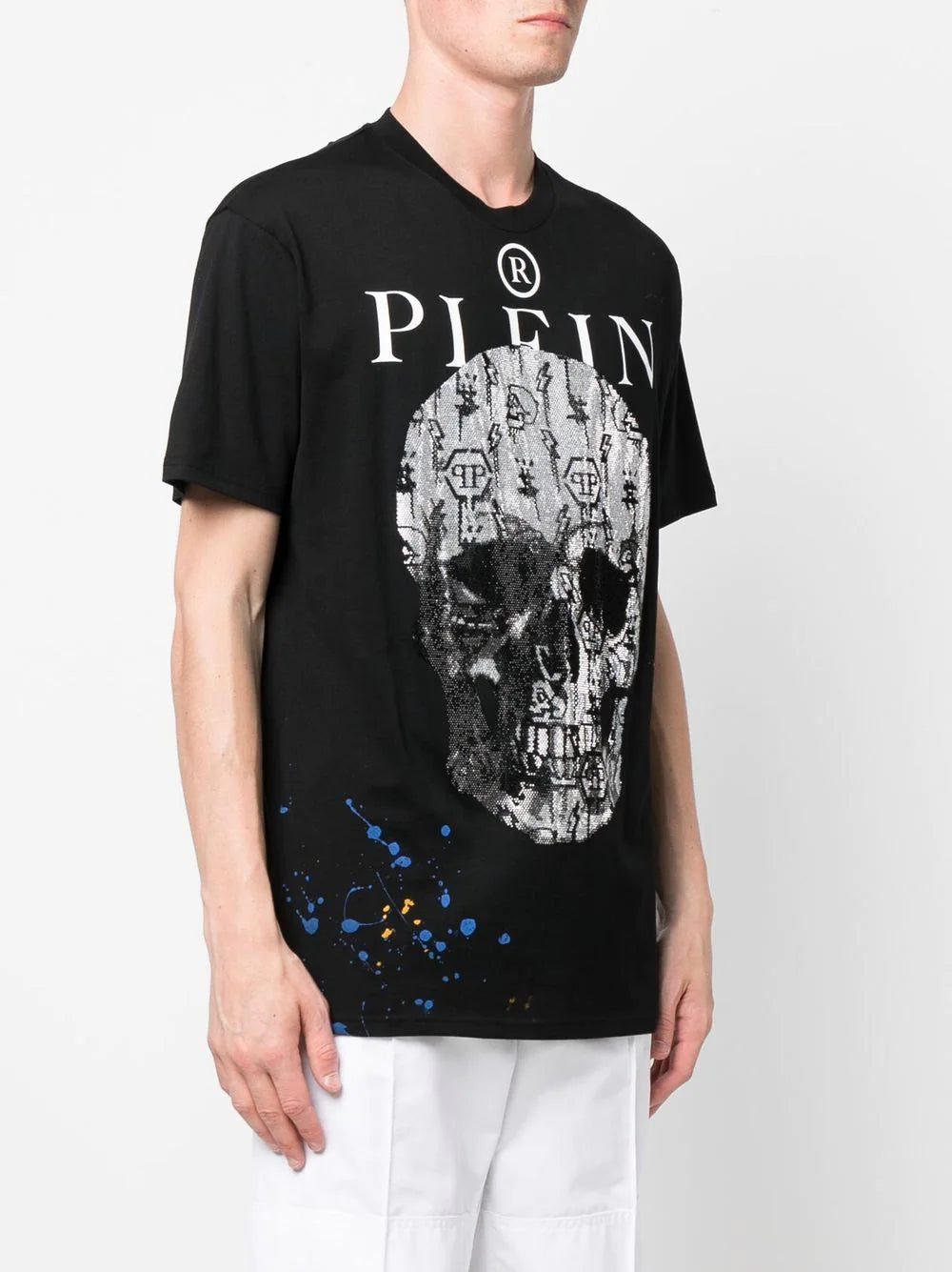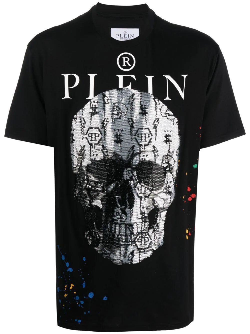 skull-print short-sleeve T-shirt from PHILIPP PLEIN featuring black/white, cotton, skull print to the front, logo print to the front, round neck, short sleeves and straight hem.