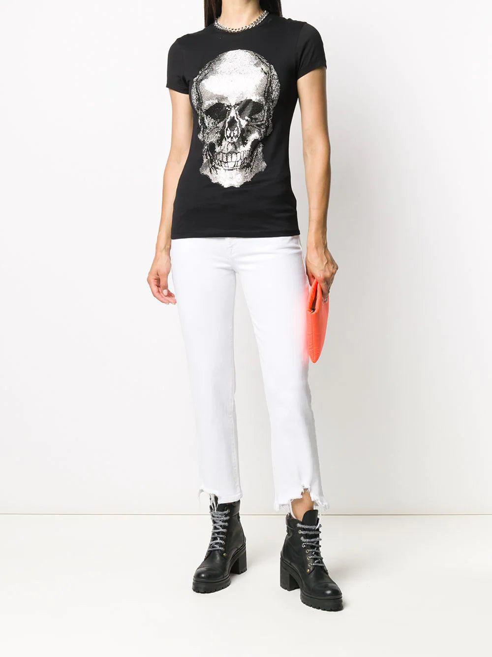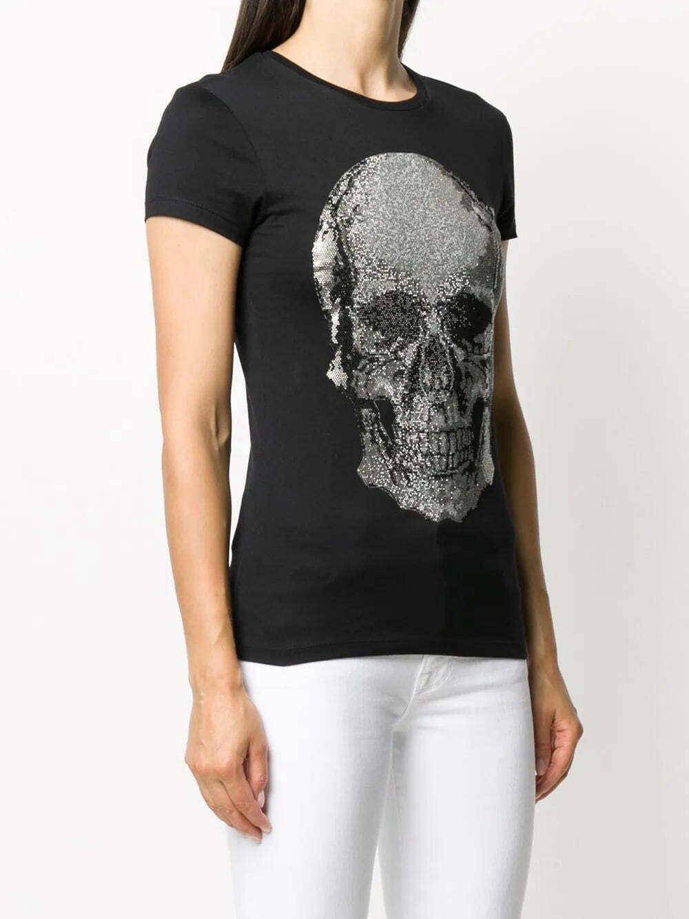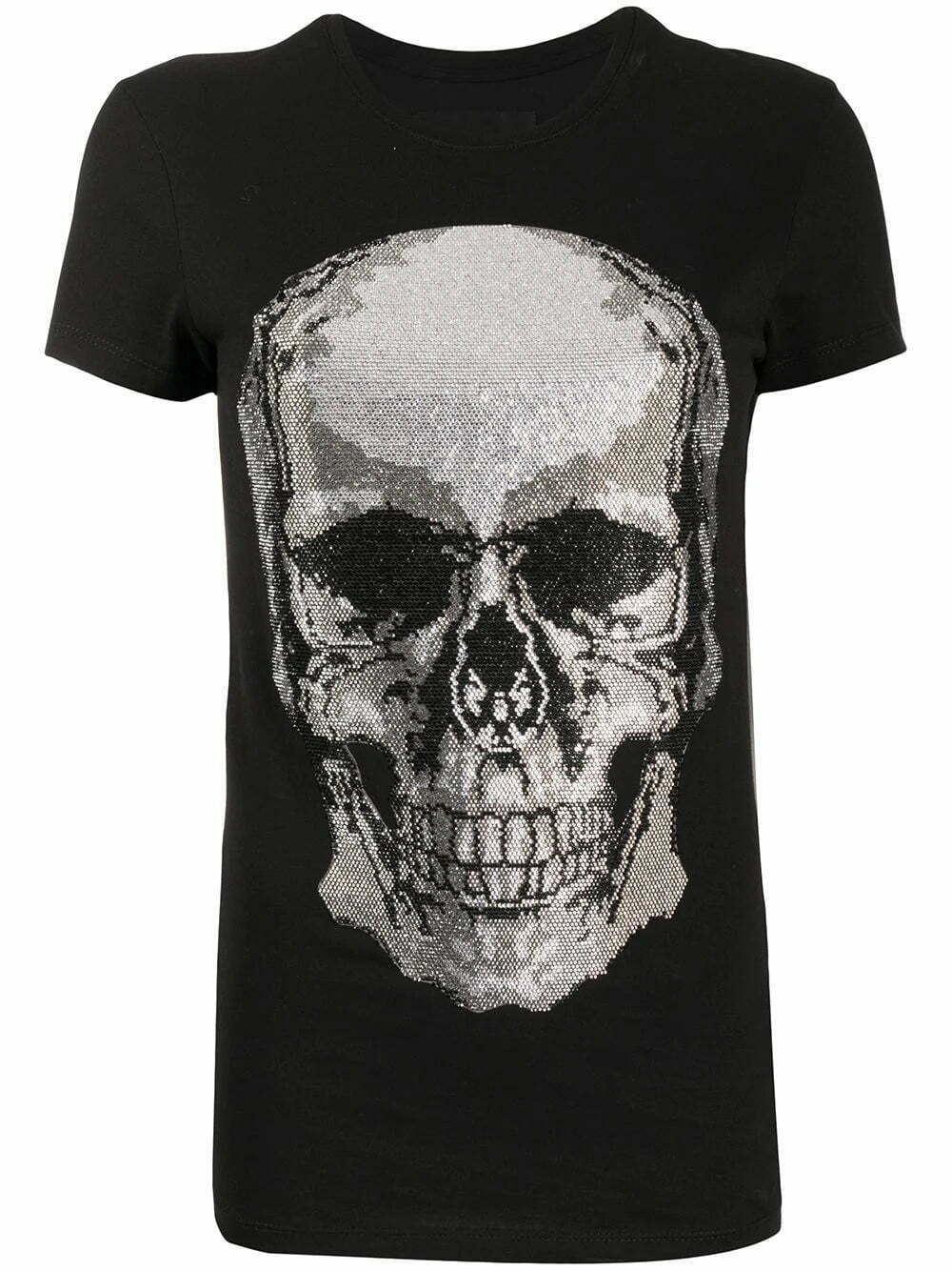 Black cotton Skull rhinestone T-Shirt from Philipp Plein featuring a rhinestone skull detail, a crew neck, short sleeves and a straight hem.