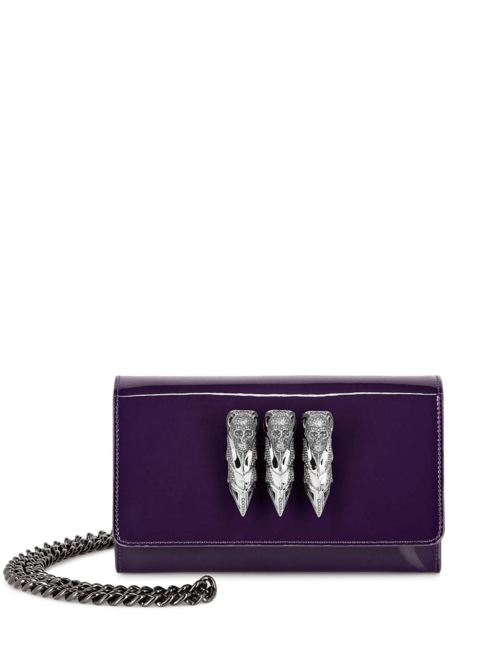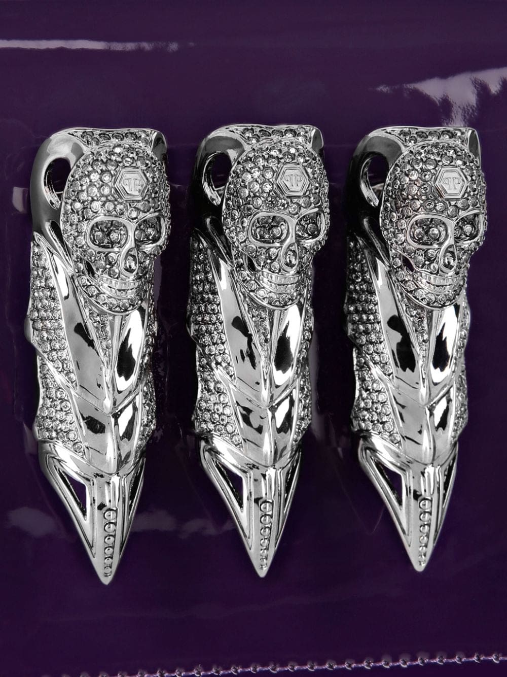 True to Philipp Plein's rebellious style, this shoulder bag is punctuated with three rhinestone-embellished skulls to the front, a familiar motif that is seen throughout the brand's collections.