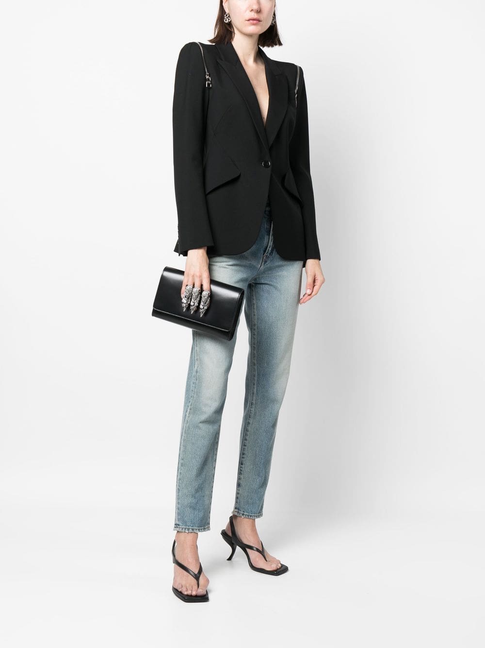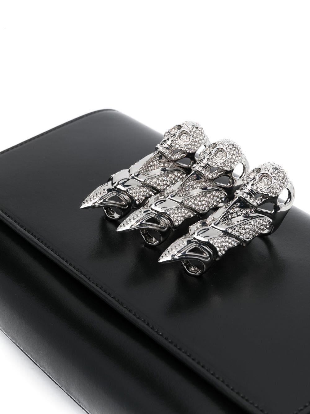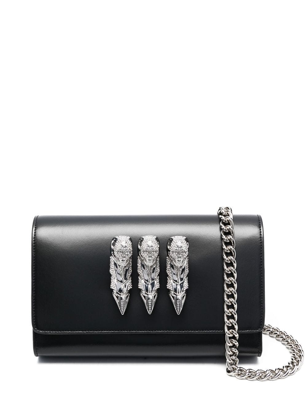 black calf leather ring hardware detailing skull stud detailing crystal embellishment chain-link shoulder strap foldover top with magnetic fastening main compartment leopard print lining internal logo plaque internal zip-fastening pocket