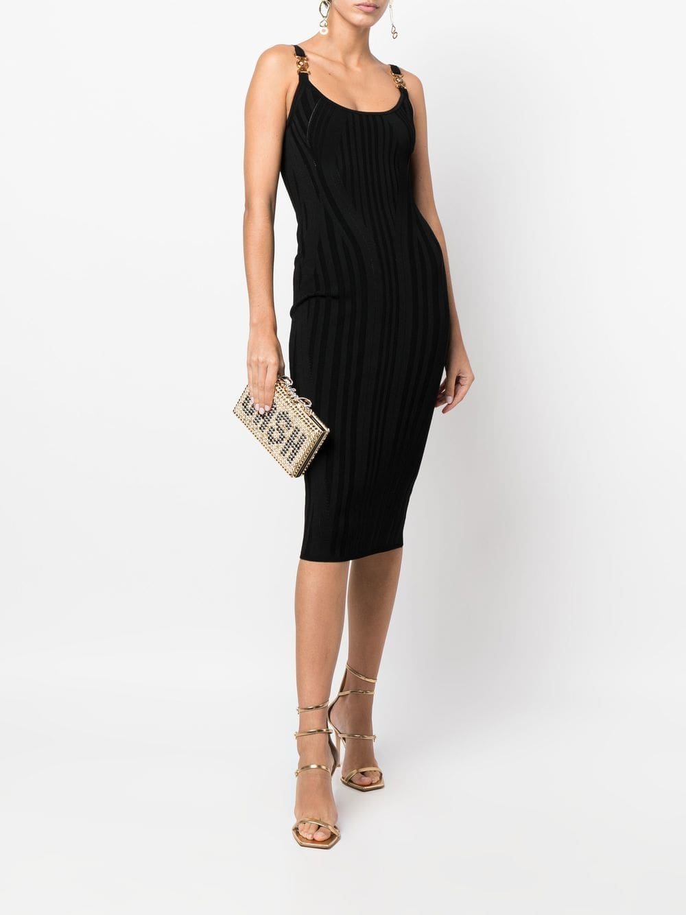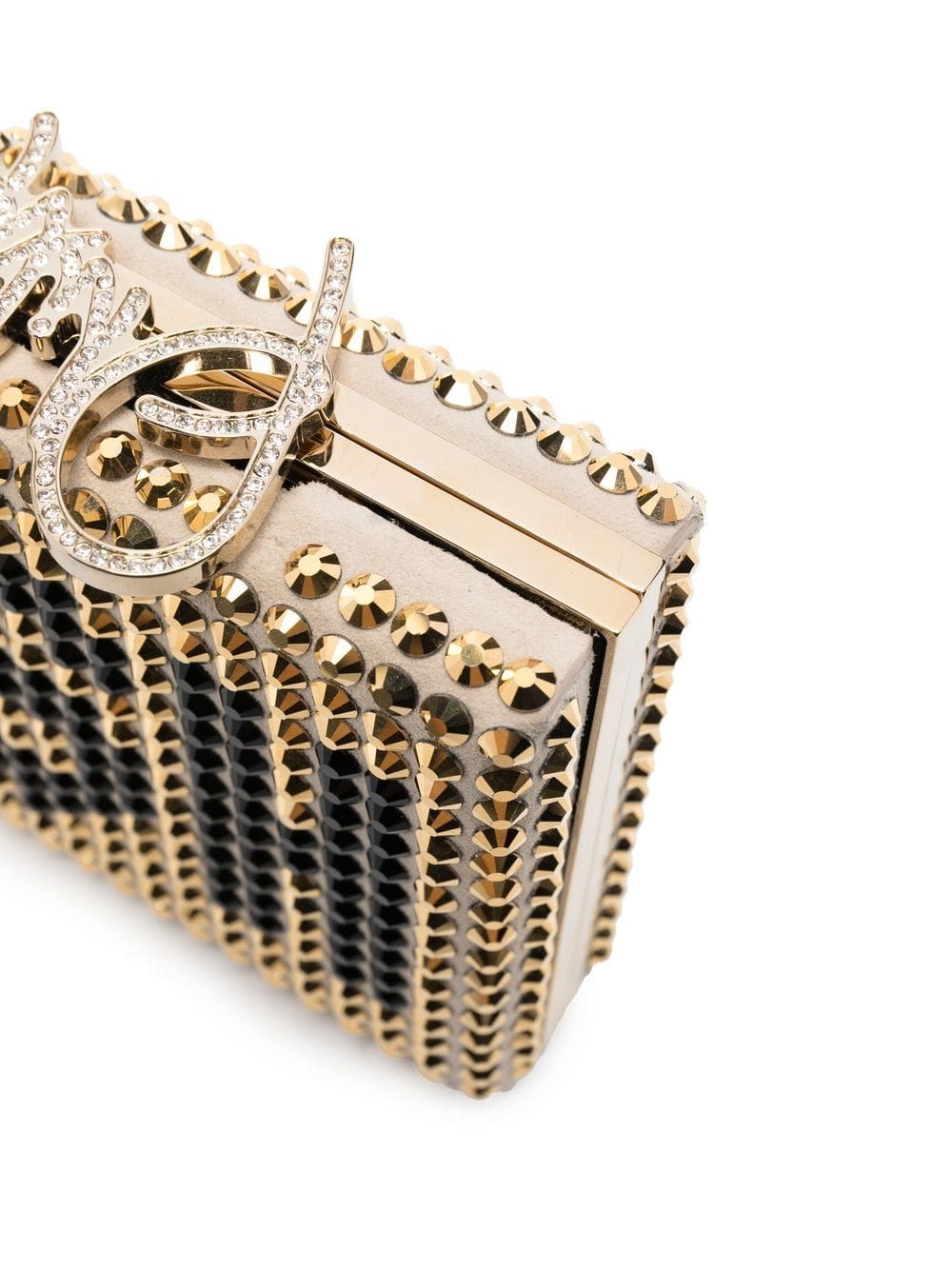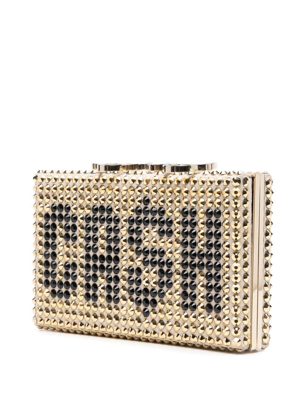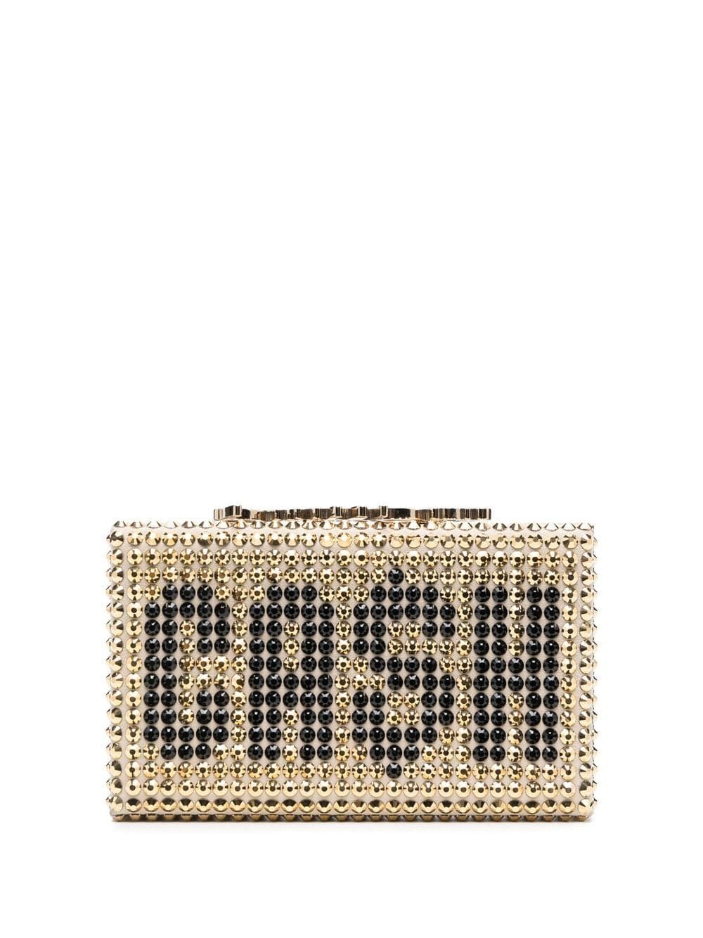 gold-tone calf leather gold-tone hardware gold-tone stud detailing crystal embellishment logo print to the front internal logo plaque box-clasp fastening main compartment