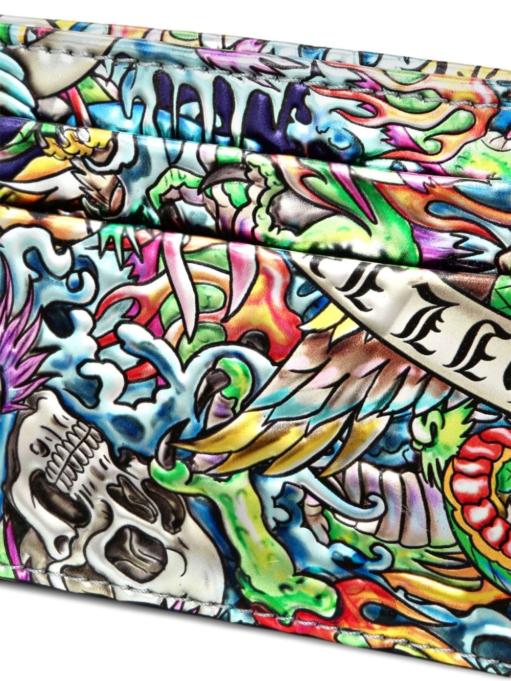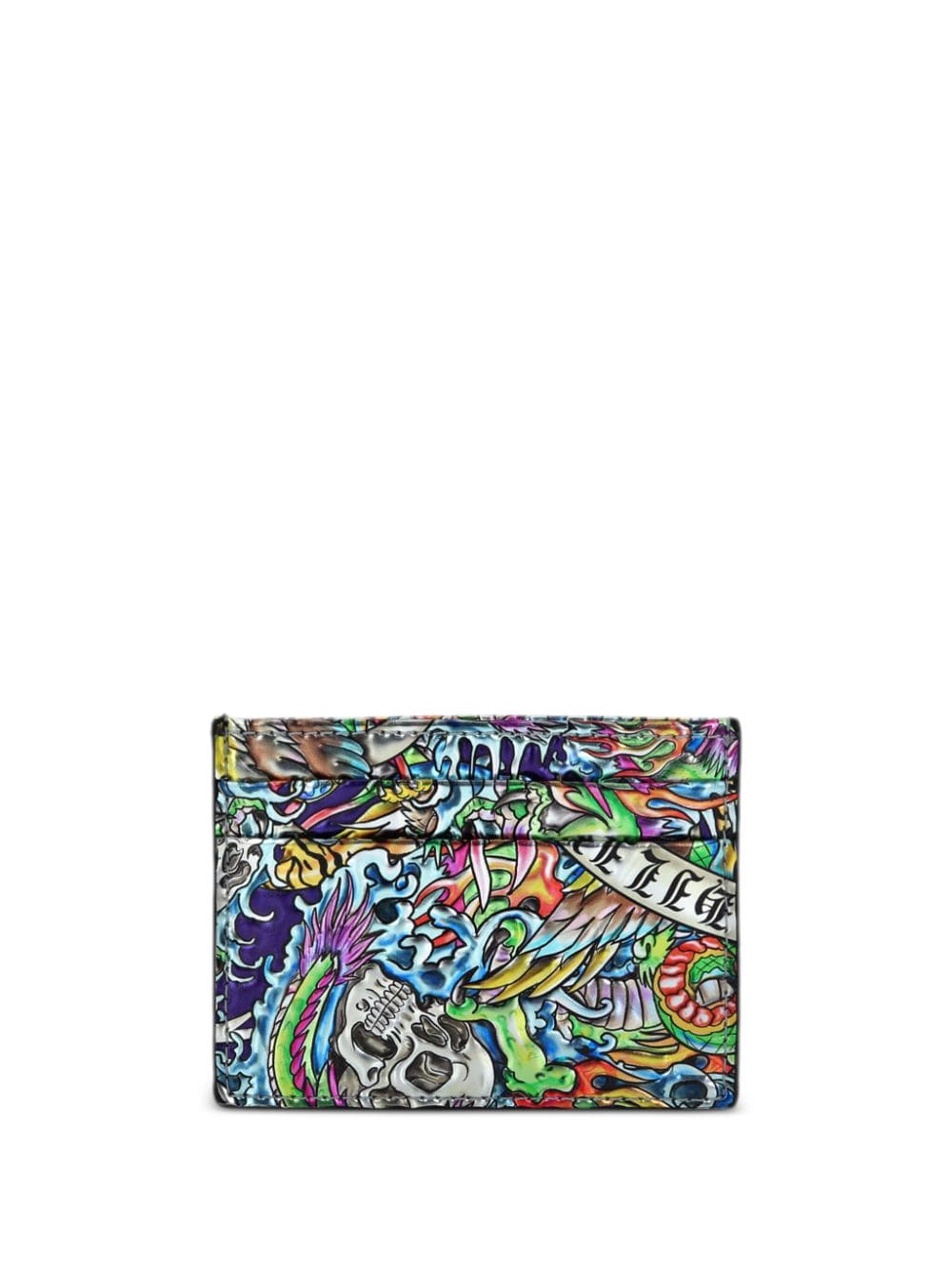 Tattoo-print leather cardholder