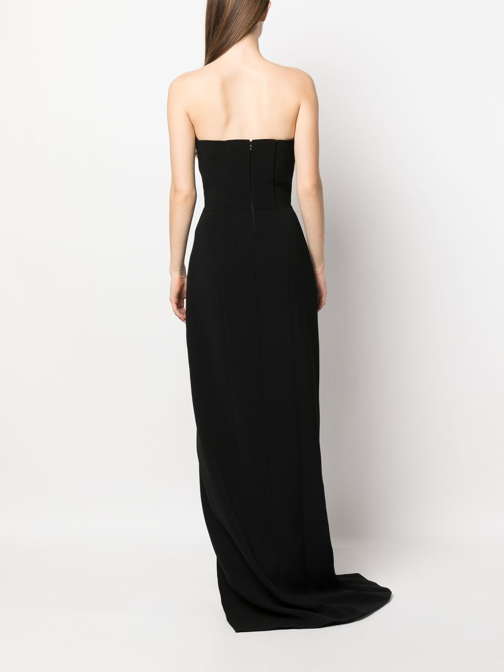 black flared crystal embellishment plunging V-neck rear zip fastening long length