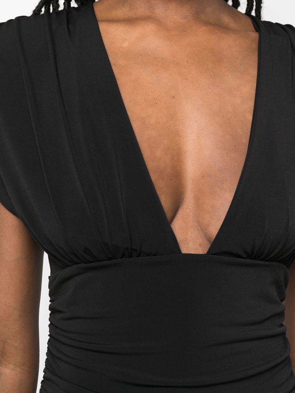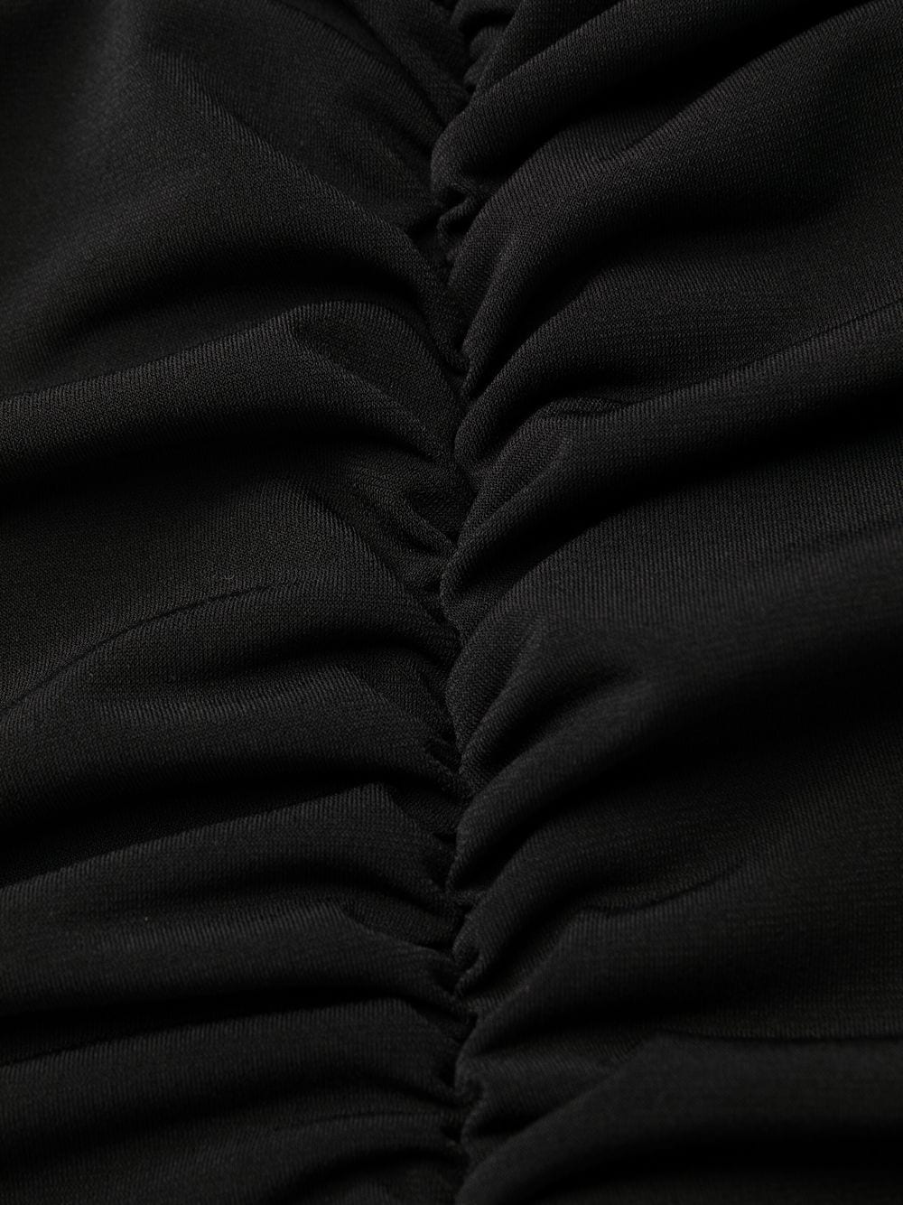 jet black stretch-design ruffled detailing plunging V-neck keyhole detail to the rear rear zip fastening straight hem