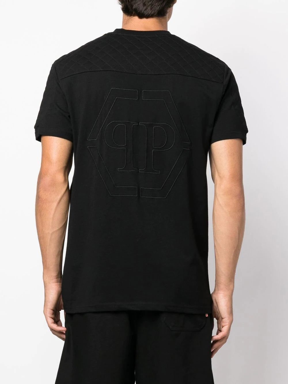 zippered logo-patch T-shirt from PHILIPP PLEIN featuring black, cotton, jersey knit, logo patch at the chest, zip details, crew neck, short sleeves and straight hem.