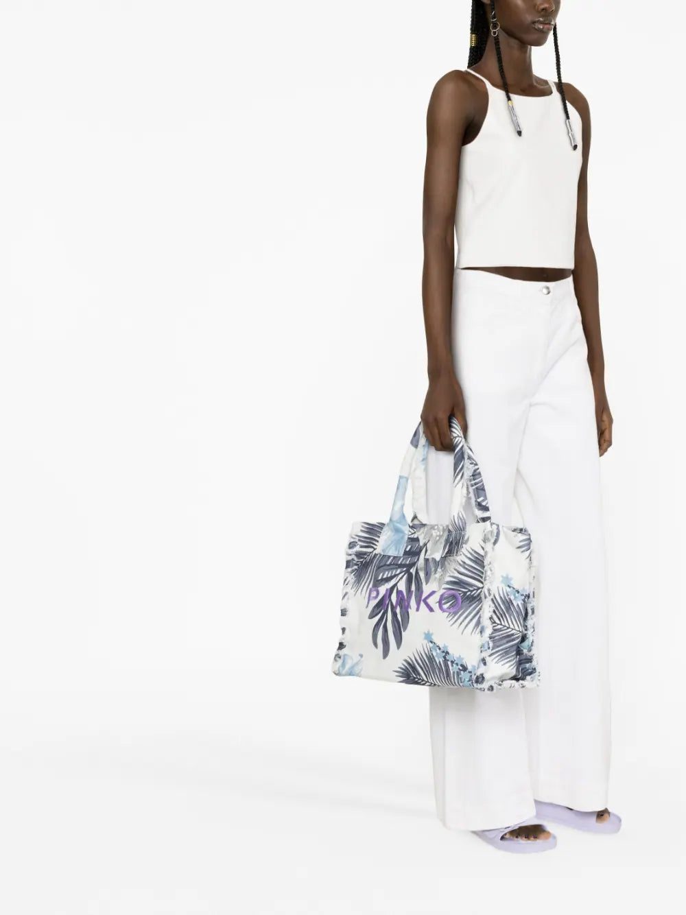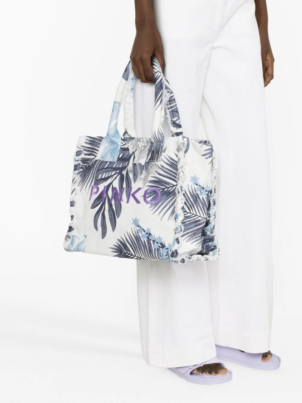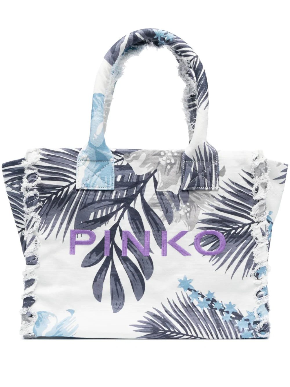 This beach bag from PINKO is adorned with an all-over floral print and distressed detailing, whilst the accessory is made recognisable by embroidered logo lettering to the front of the design.