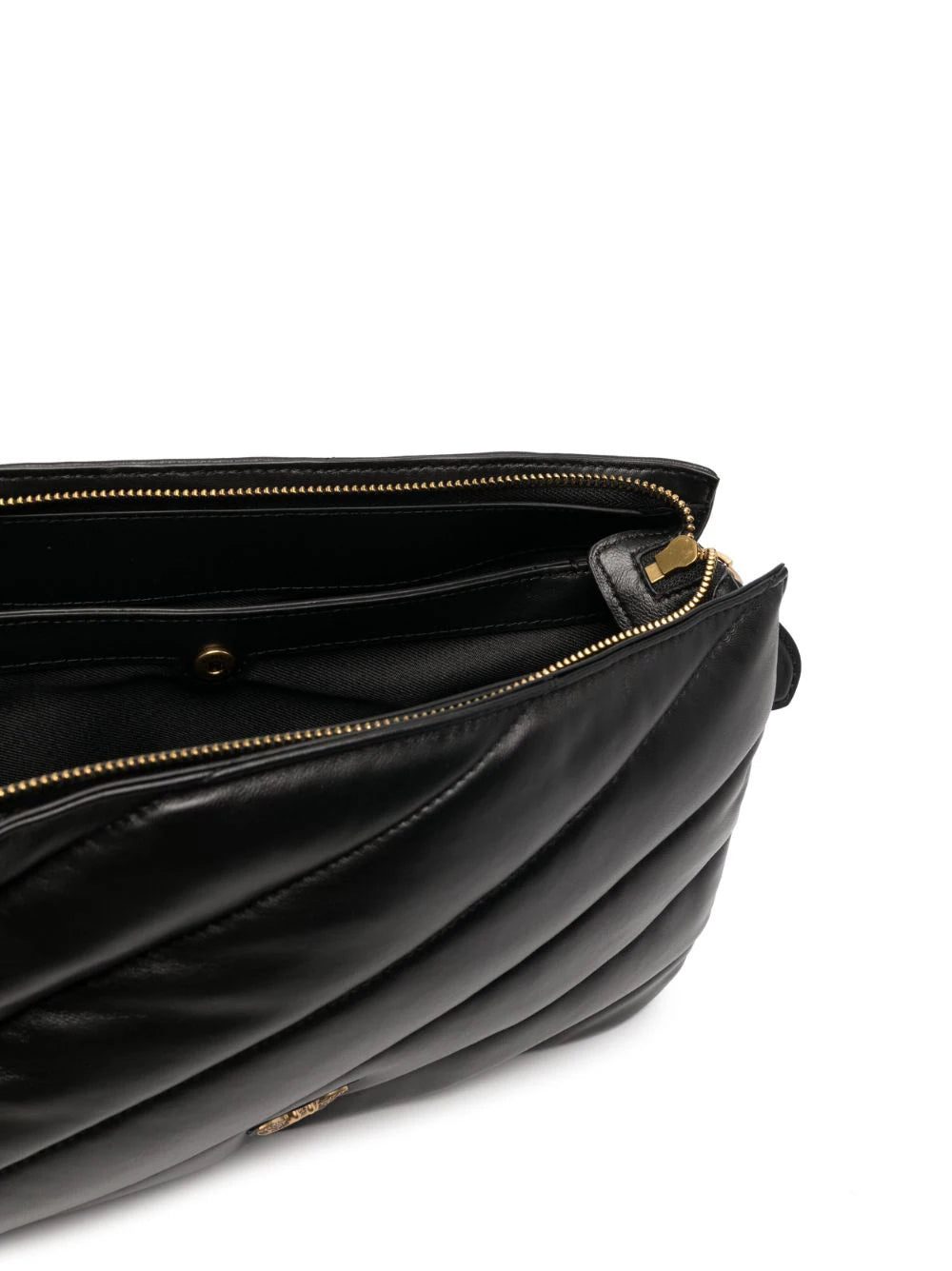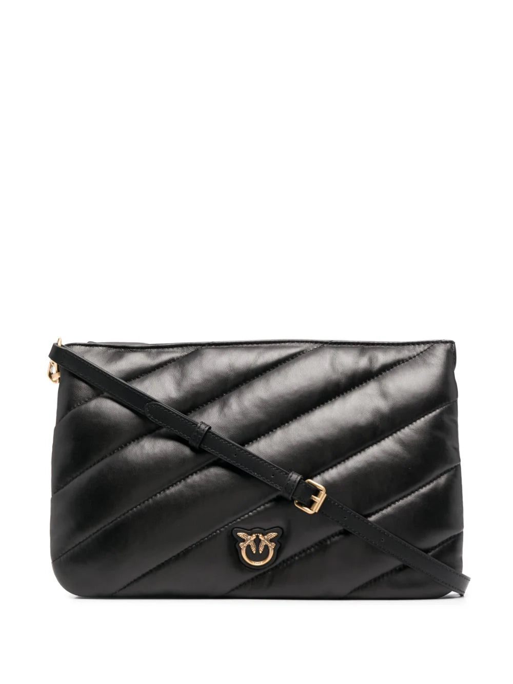 Quilted in a diagonal pattern, PINKO's Twins crossbody bag appears here in its medium iteration. For an added branded accent, the brand's signature Love Birds plaque is complemented by logo lettering charms on the shoulder strap.