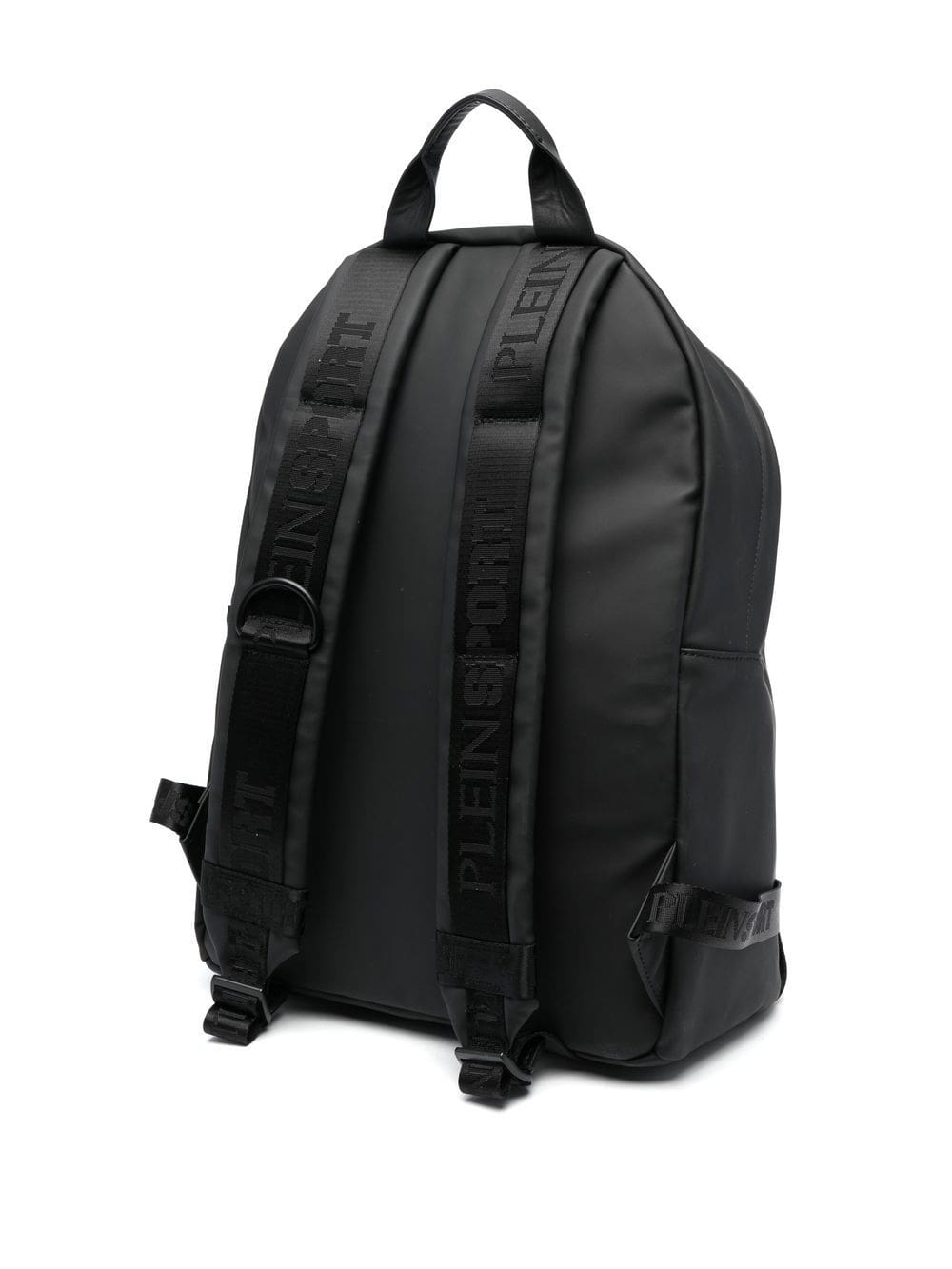 jet black debossed logo to the front single flat top handle all-around zip fastening front zip-fastening pocket adjustable shoulder straps