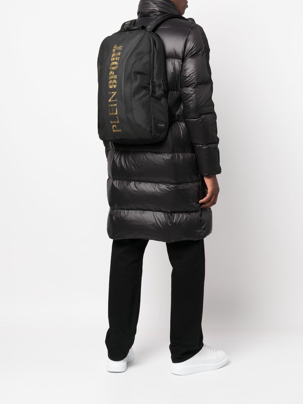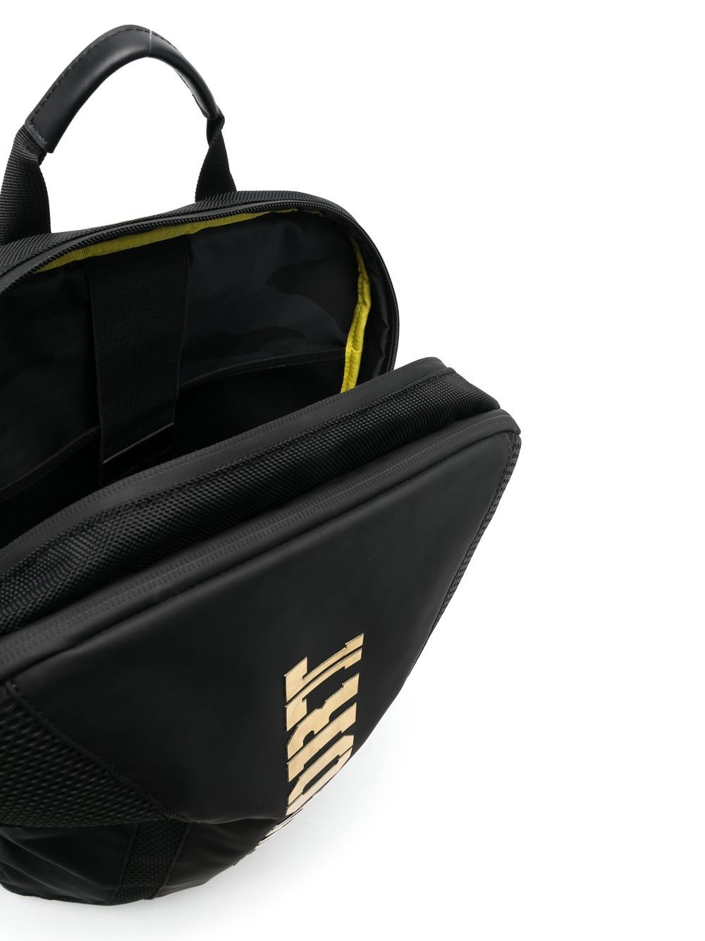 jet black gold-tone logo lettering single flat top handle two adjustable shoulder straps top zip fastening main compartment internal slip pocket