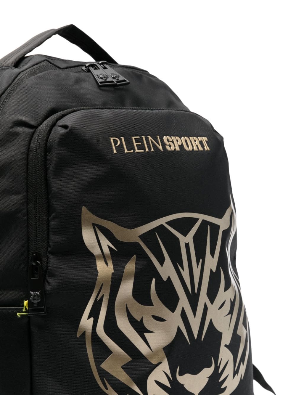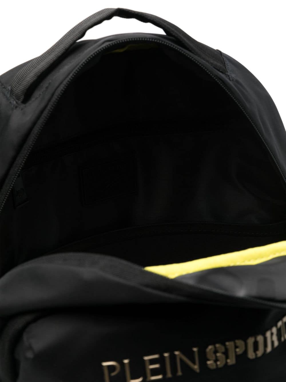 black panelled design logo print to the front two padded adjustable shoulder straps single top handle top zip fastening side buckle fastening main compartment