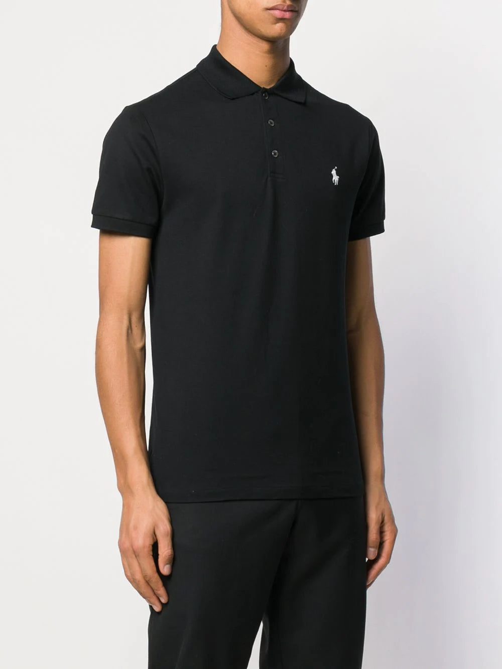 Black cotton blend contrast logo polo shirt from Polo Ralph Lauren featuring a classic collar, a front button fastening, short sleeves and a straight hem.