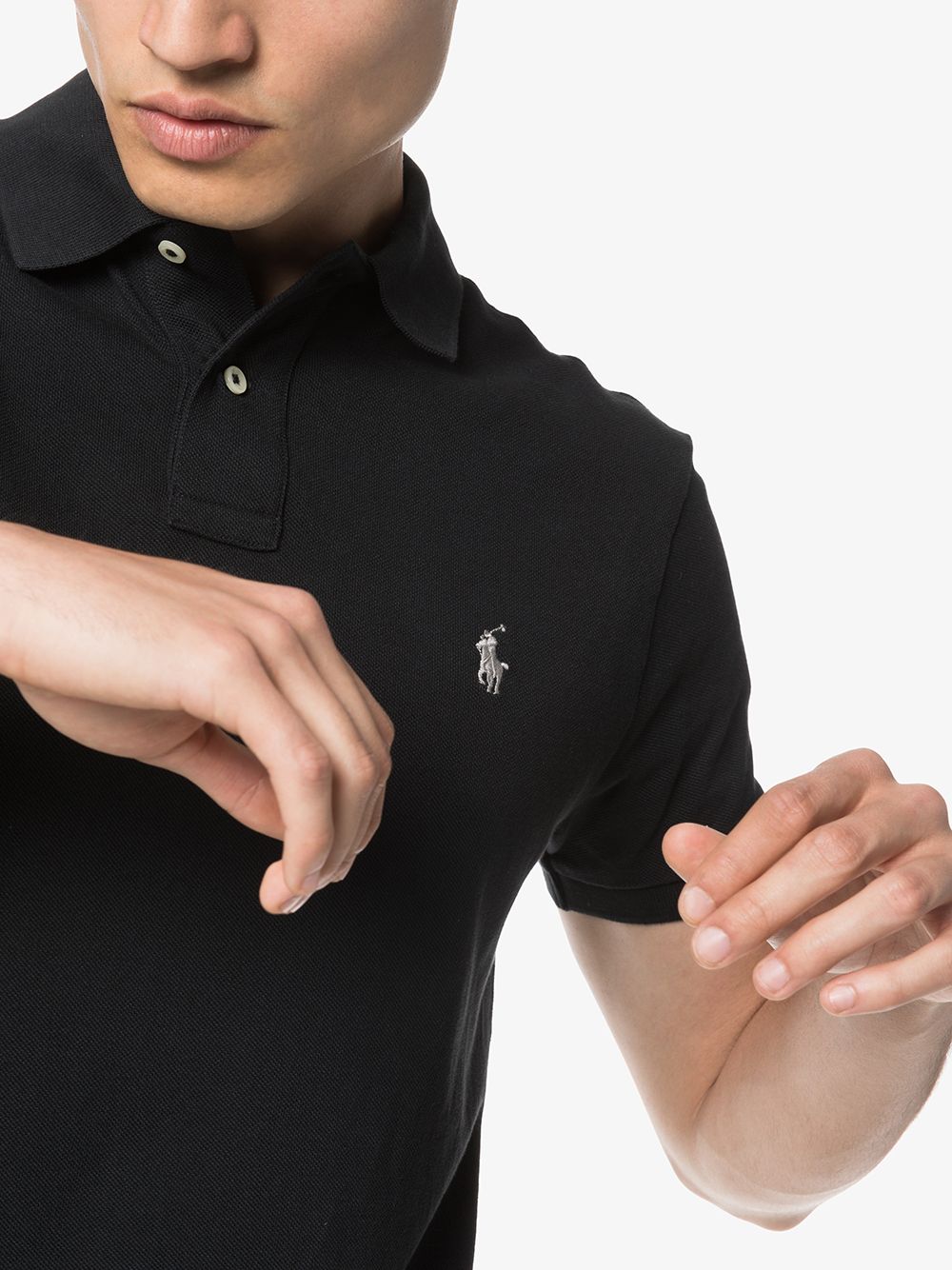 Authentic and iconic, Polo Ralph Lauren is a symbol of the modern preppy lifestyle. Combining Ivy League inspiration with All-American sporting style, the Polo Ralph Lauren collection appeals to all generations. This black cotton embroidered logo polo shirt from Polo Ralph Lauren features a classic collar, a front button fastening and short sleeves.