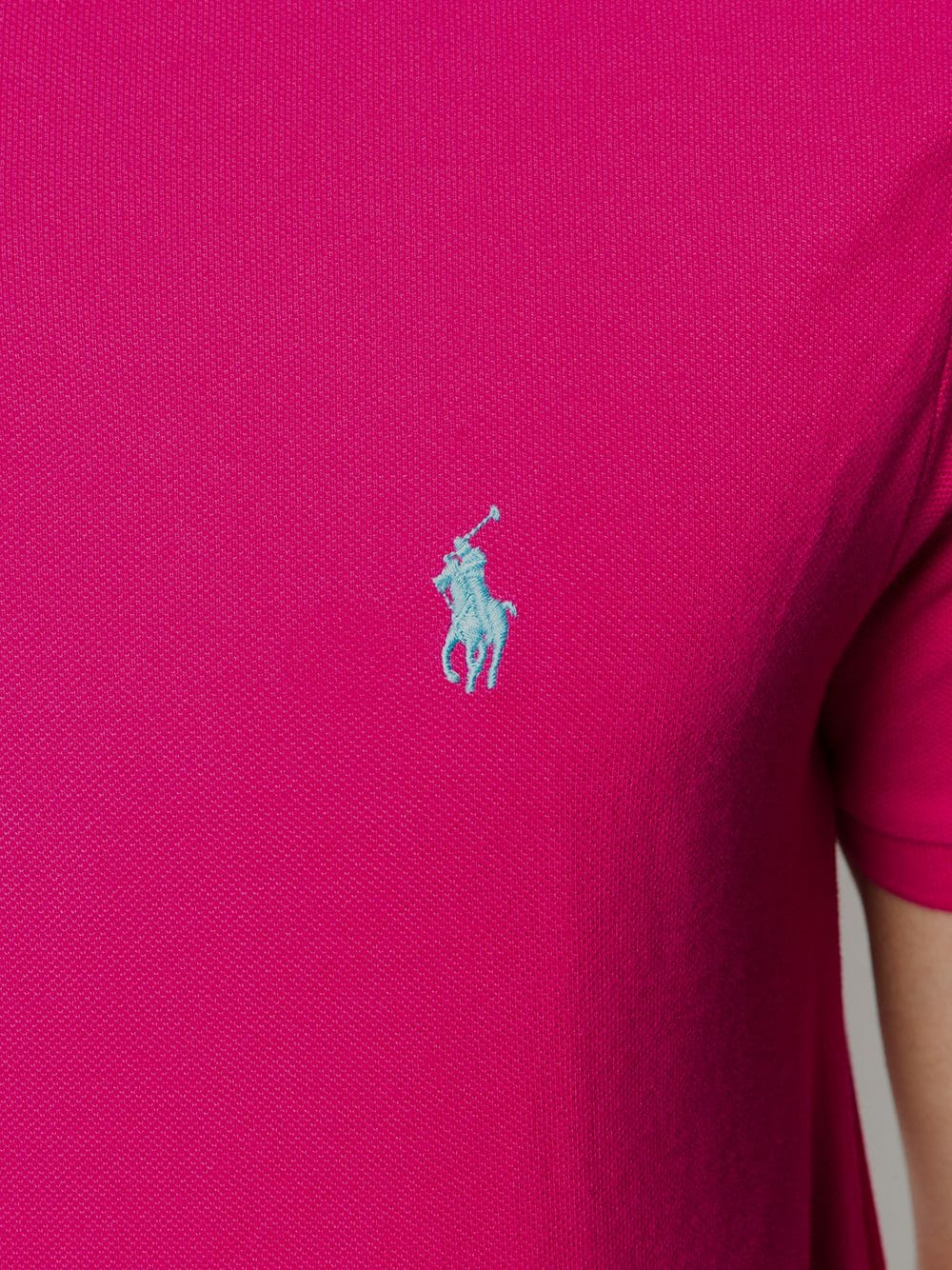 Fuchsia cotton embroidered logo polo shirt from Polo Ralph Lauren featuring a classic polo collar, a front button placket, a contrast embroidered logo at the chest and short sleeves.