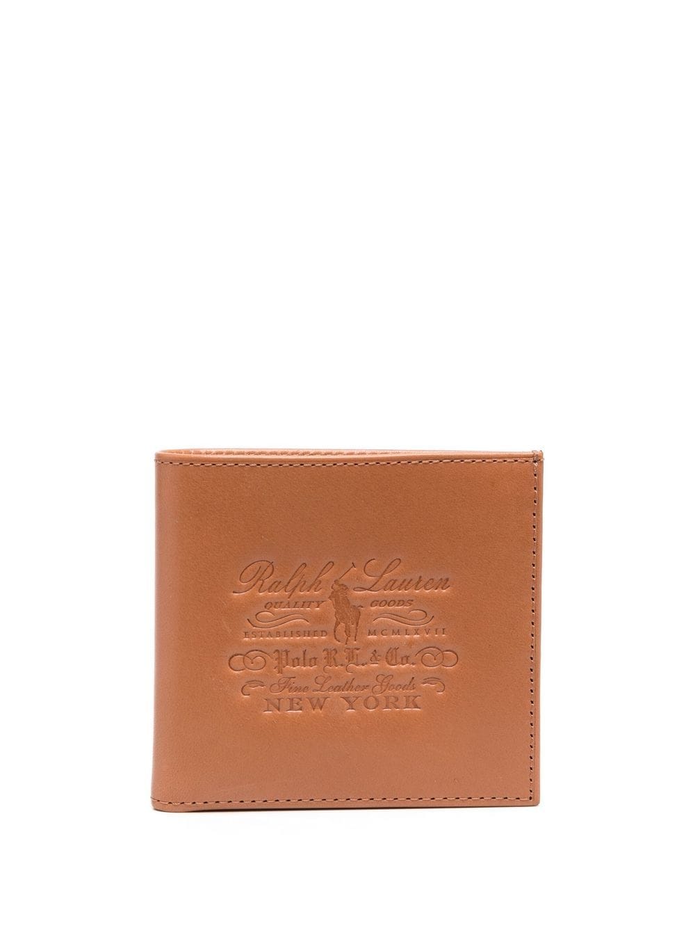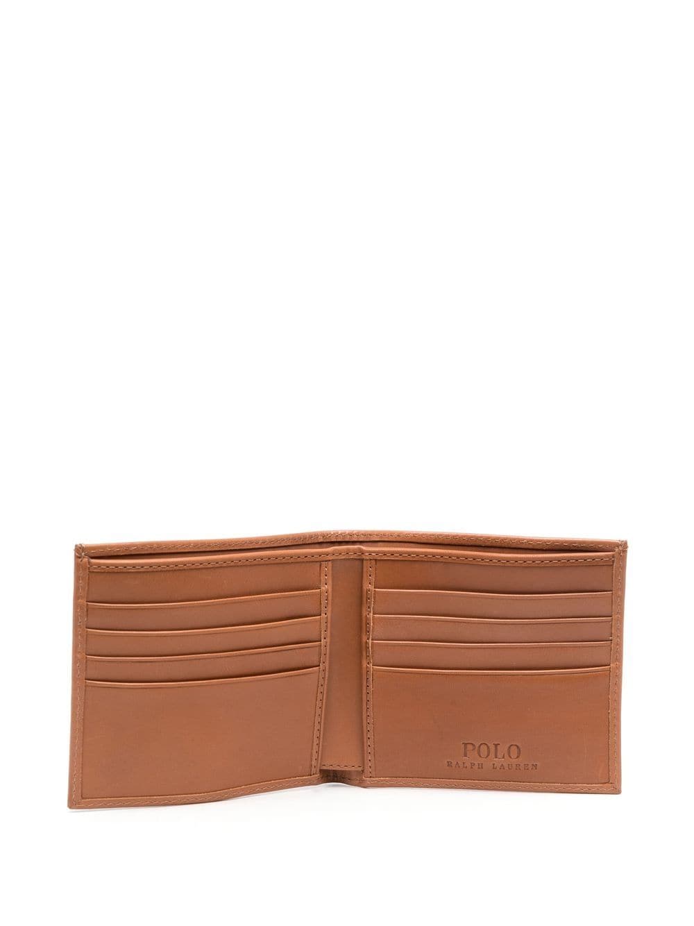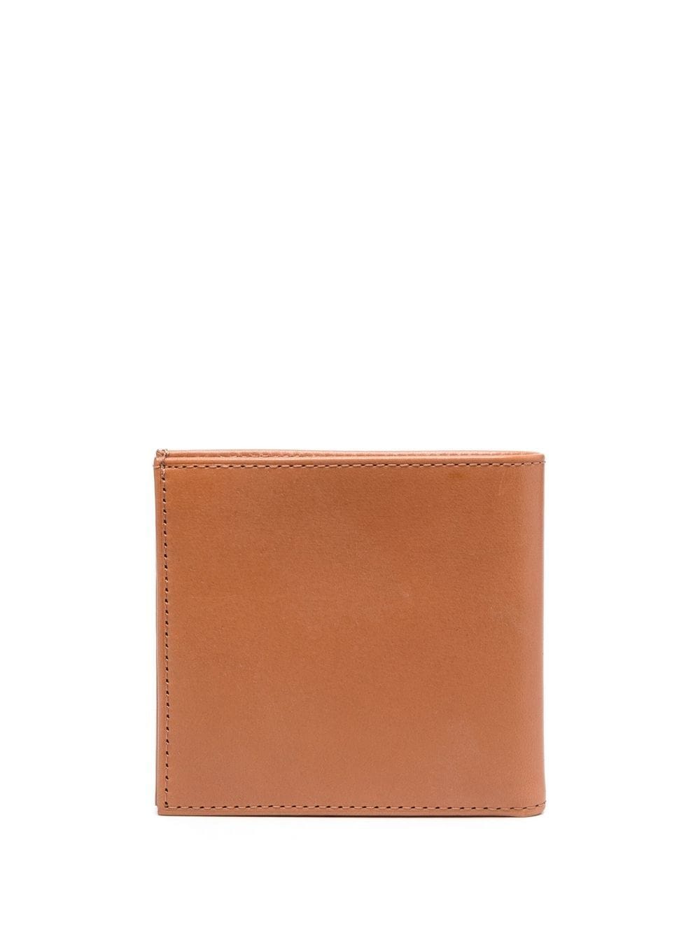 caramel brown calf leather debossed logo to the front bi-fold design internal card slots multiple internal slip pockets stitched edge
