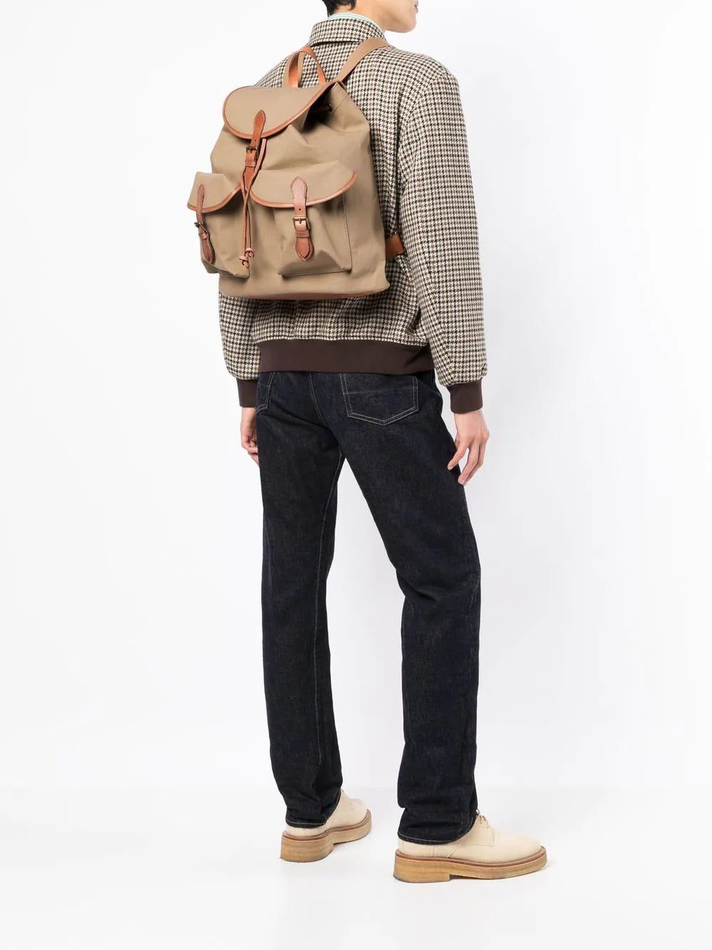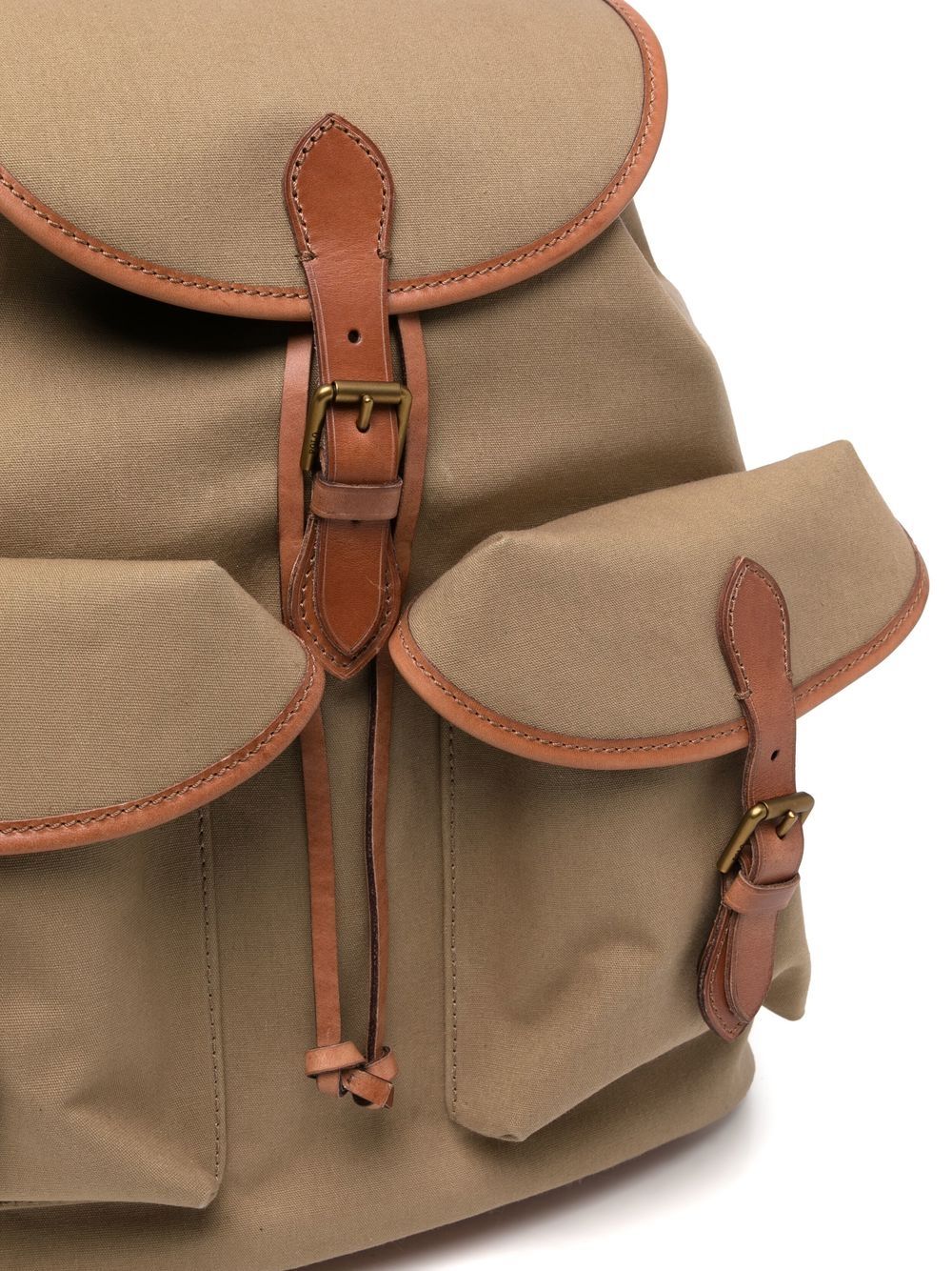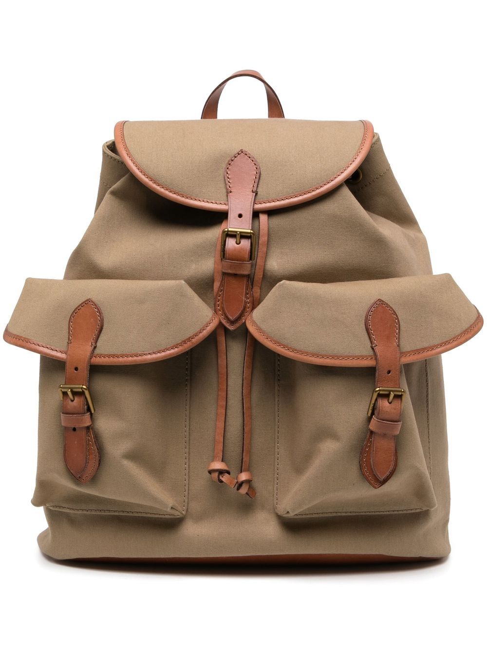 large foldover top backpack from POLO RALPH LAUREN featuring khaki, cotton, calf hair, adjustable shoulder straps, foldover top, drawstring fastening, two front flap pockets, main compartment and internal zip-fastening pocket.