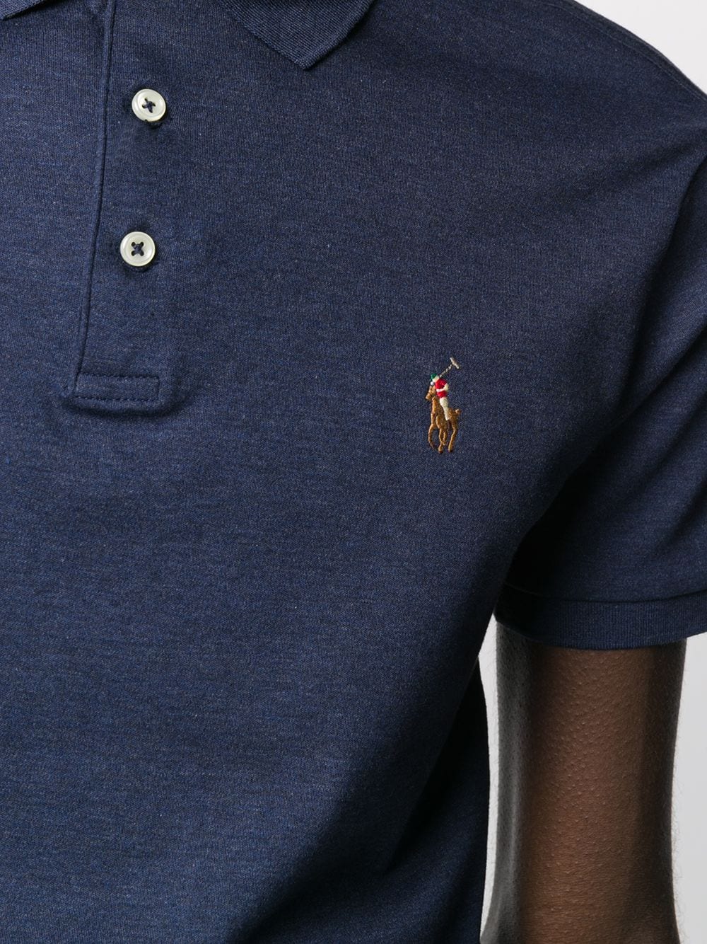 Navy cotton logo embroidered polo shirt from Polo Ralph Lauren featuring an embroidered logo to the front, a classic polo collar and short sleeves.