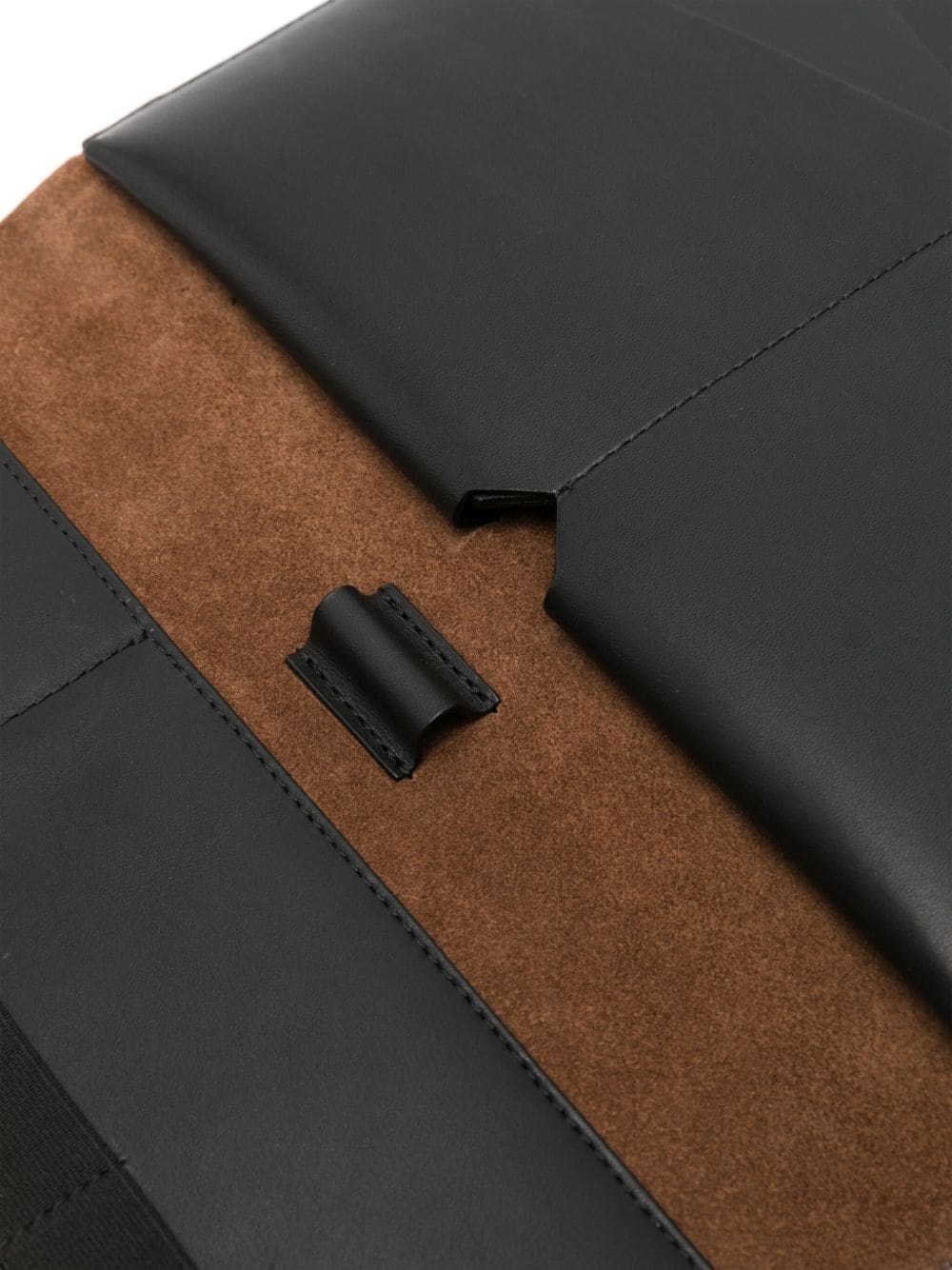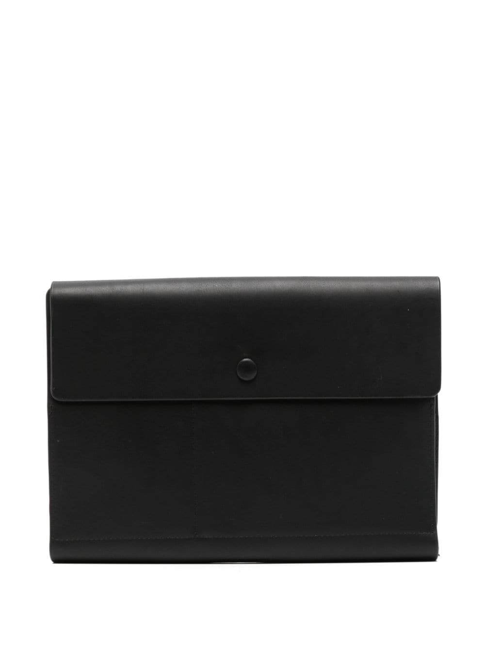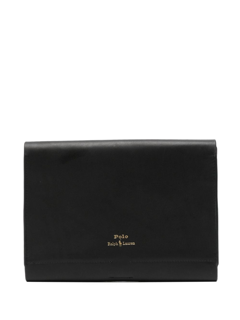 logo-lettering leather tech case from POLO RALPH LAUREN featuring black, calf leather, gold-tone logo lettering, foldover top with magnetic fastening and partitioned compartment.
