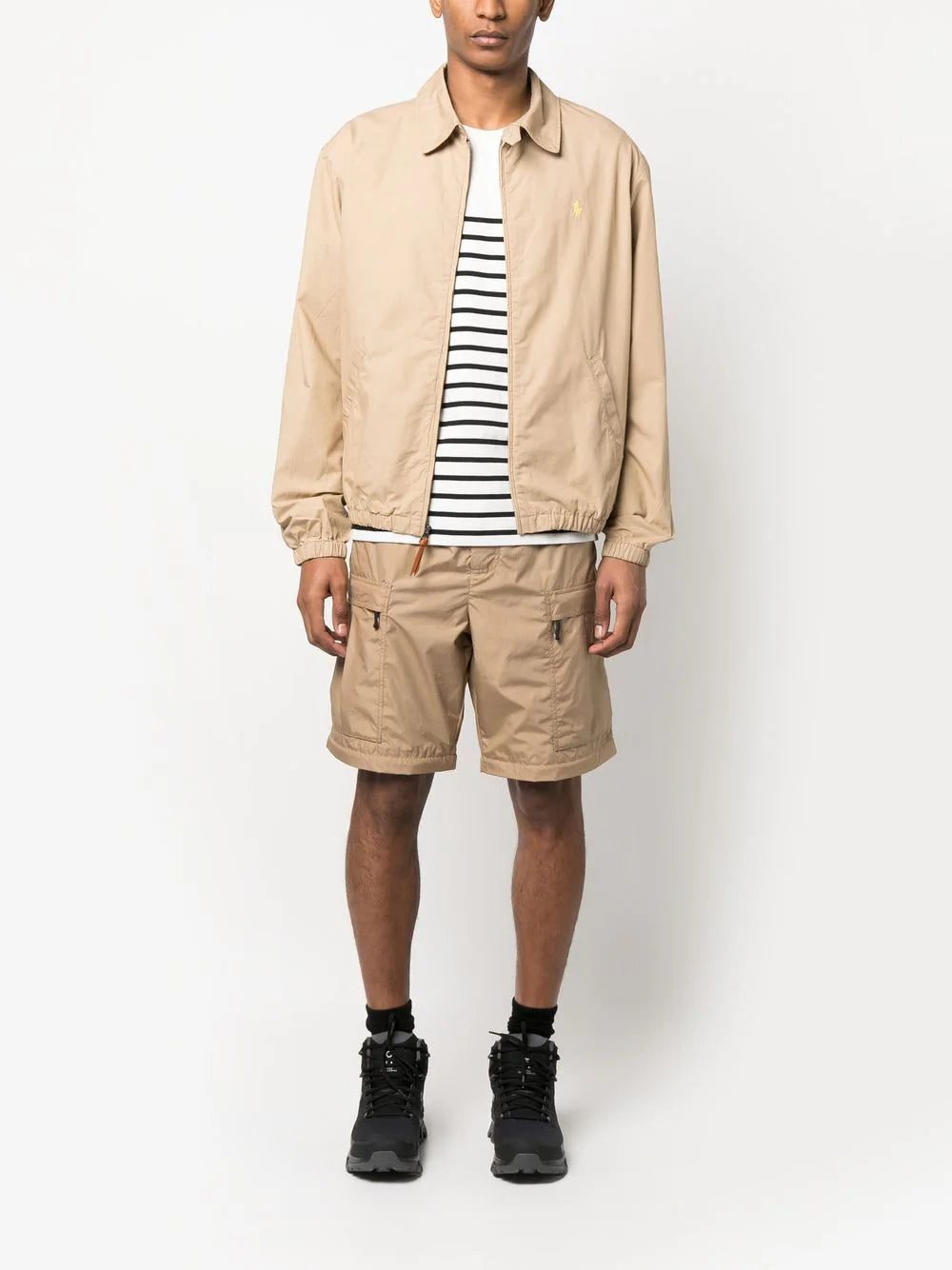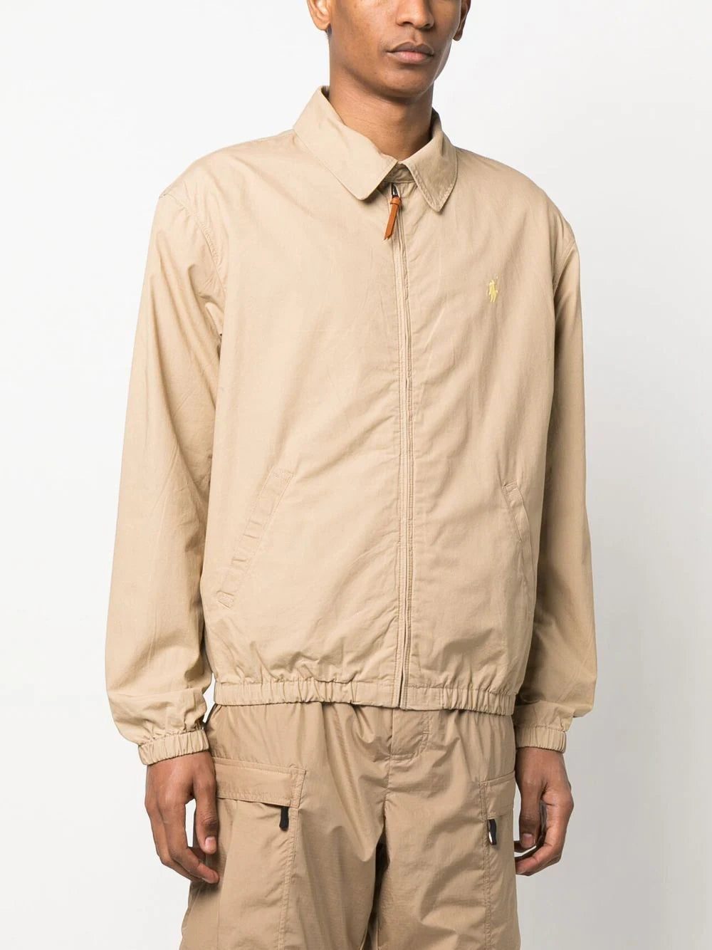 Polo-Pont collared jacket from POLO RALPH LAUREN featuring beige, cotton, signature Polo Pony motif, classic collar, front zip fastening, long sleeves, elasticated cuffs, two side slit pockets and elasticated hem.