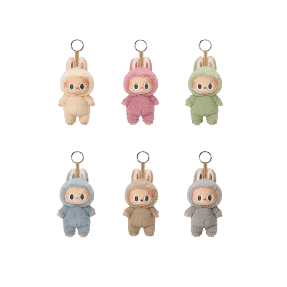 This case of the Pop Mart Labubu Blind Boxes comes with 6 blind boxes of these pendant figures in the form of The Monsters character Labubu. These fuzzy characters come in jumpsuits of different colors, including gray, red, brown, green, or cream. The faces of the characters are made of vinyl, and the characters are seen wearing wide smiles exposing their teeth. The fabric strap attaching the character to the gold key ring bears The Monsters branding.
