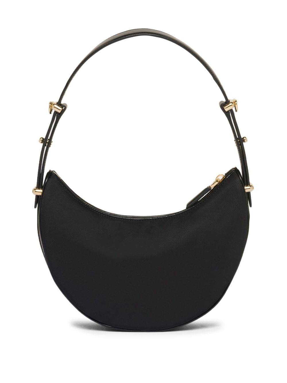 Crafted from Re-Nylon, a regenerated fabric obtained from ocean waste, this Arqué shoulder bag from Prada is embellished with the brand's signature triangle logo. The accessory with a curvy silhouette is completed by an adjustable shoulder strap.