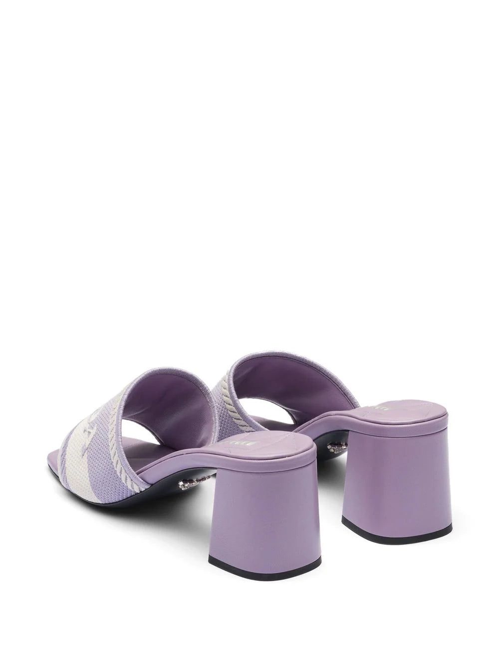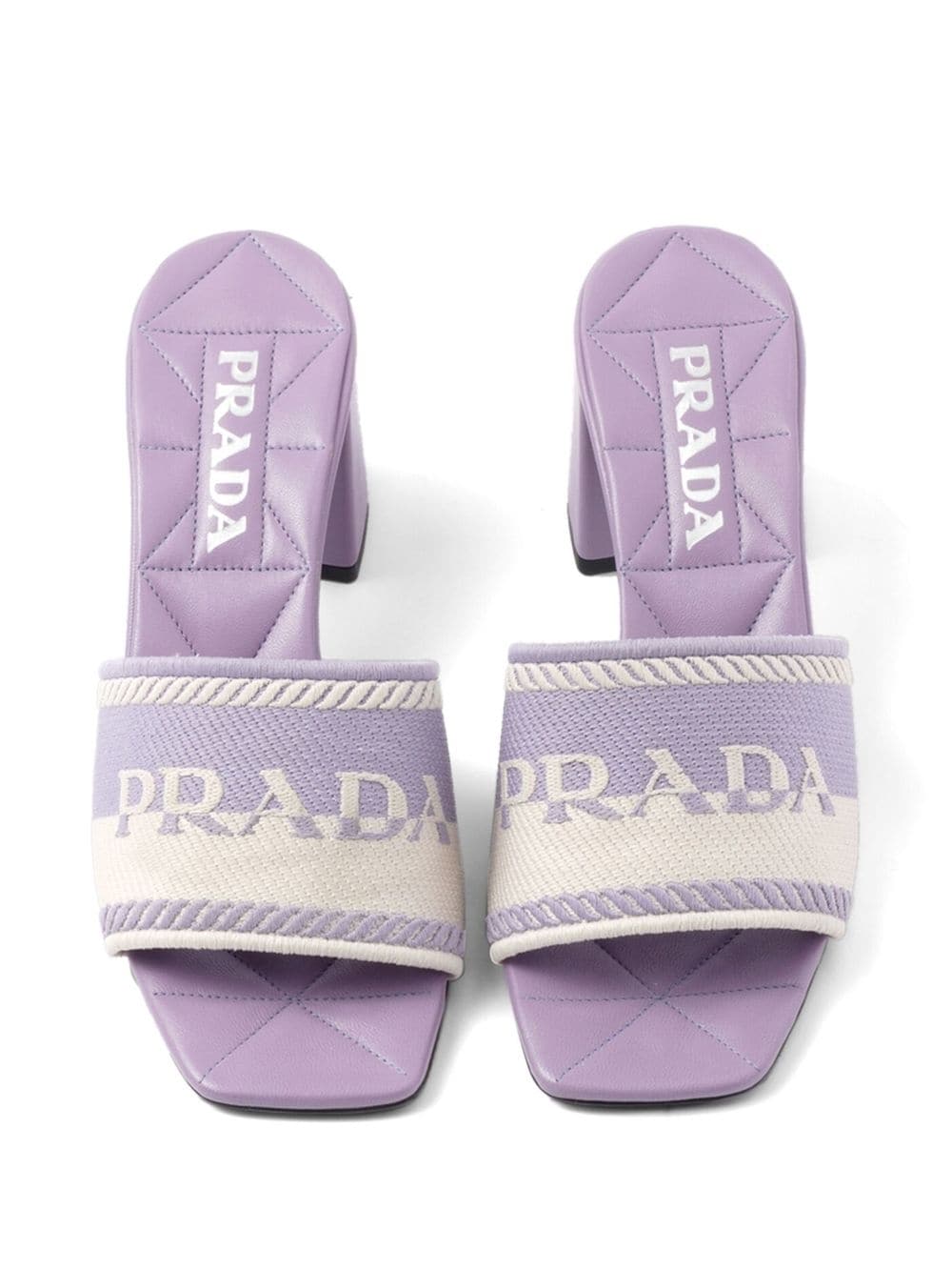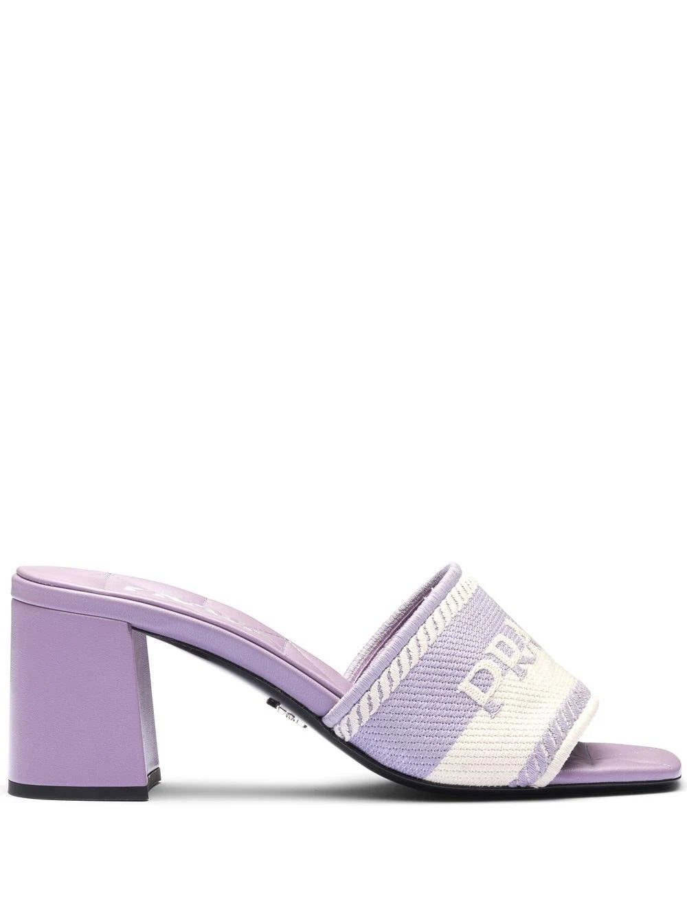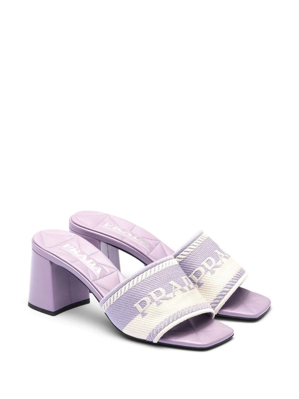 These sandals from Prada have an embroidered logo to the front of the design and sit atop a mid-block heel.