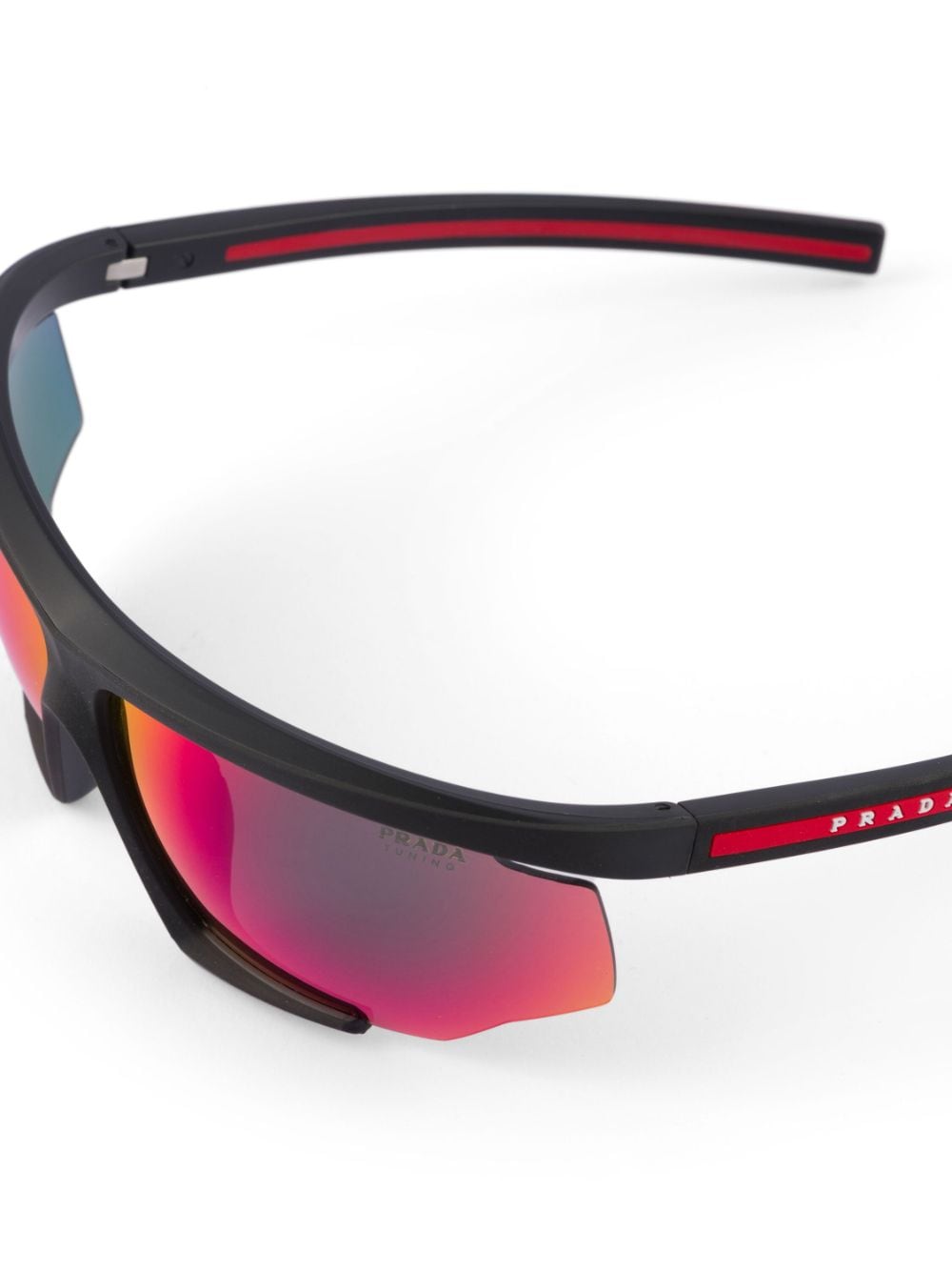Made in Italy from ultra-light nylon fibre, Prada's Linea Rossa Impavid sunglasses benefit from a sportswear-inspired shield frame and mirrored UV-protective lenses developed to enhance colour and perception of details.