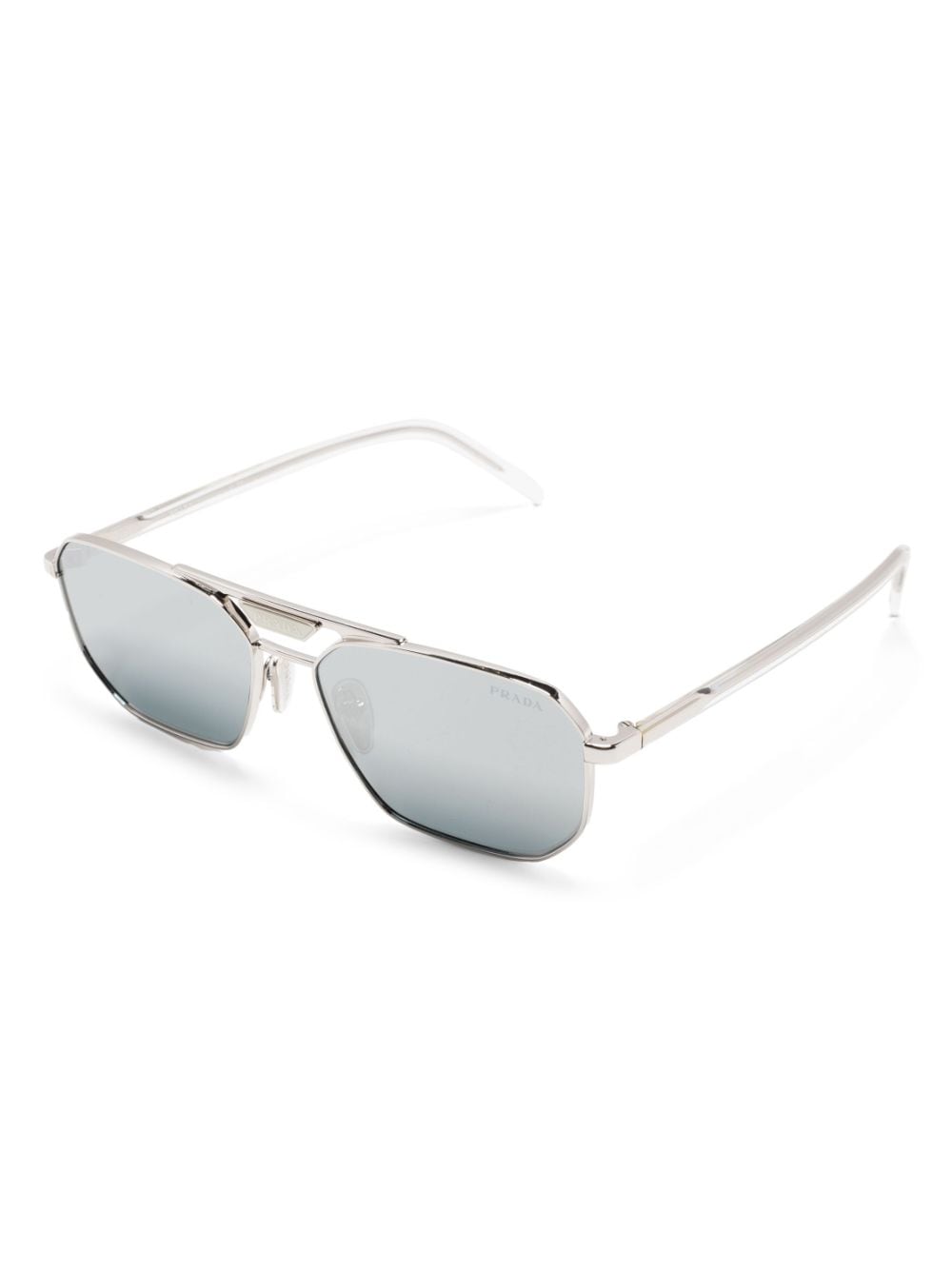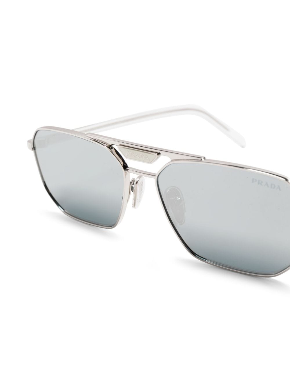 Prada reinterprets its iconic triangle logo on these metal pilot-framed sunglasses. Delivered in a timeless silver hue, the sleek sunglasses feature dark chrome-tinted lenses and a nostalgic double-bridge.