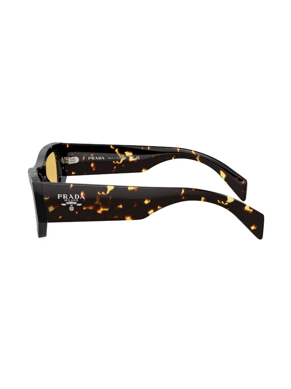 Delivered in a black-and-transparent tortoiseshell effect, these Prada sunglasses boast a thick, angular geometric frame encasing yellow tinted lenses. Meanwhile, logo lettering accents the oversized arms.