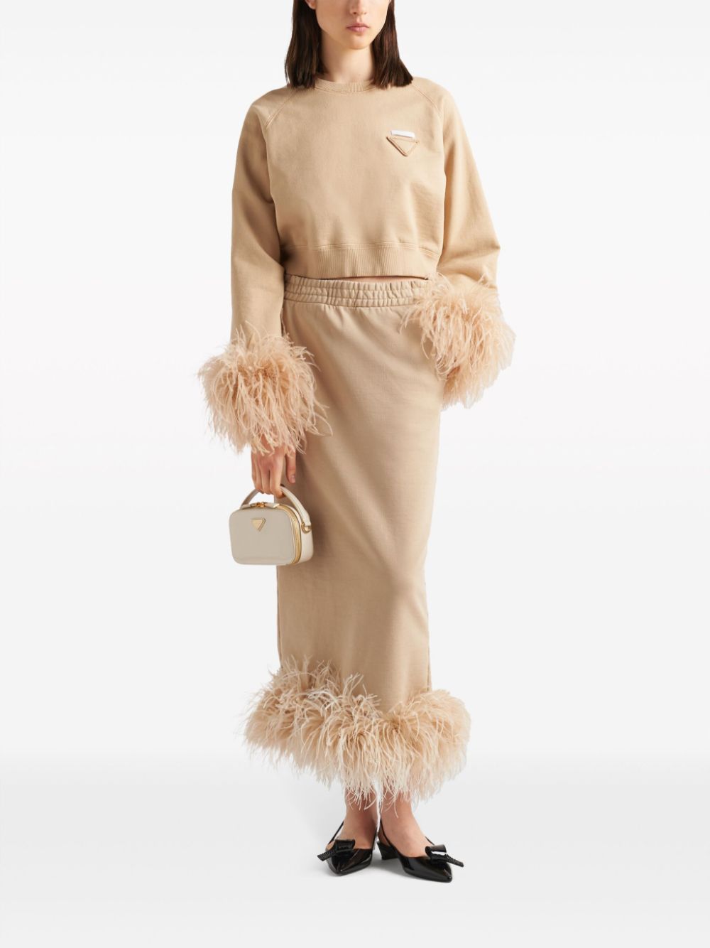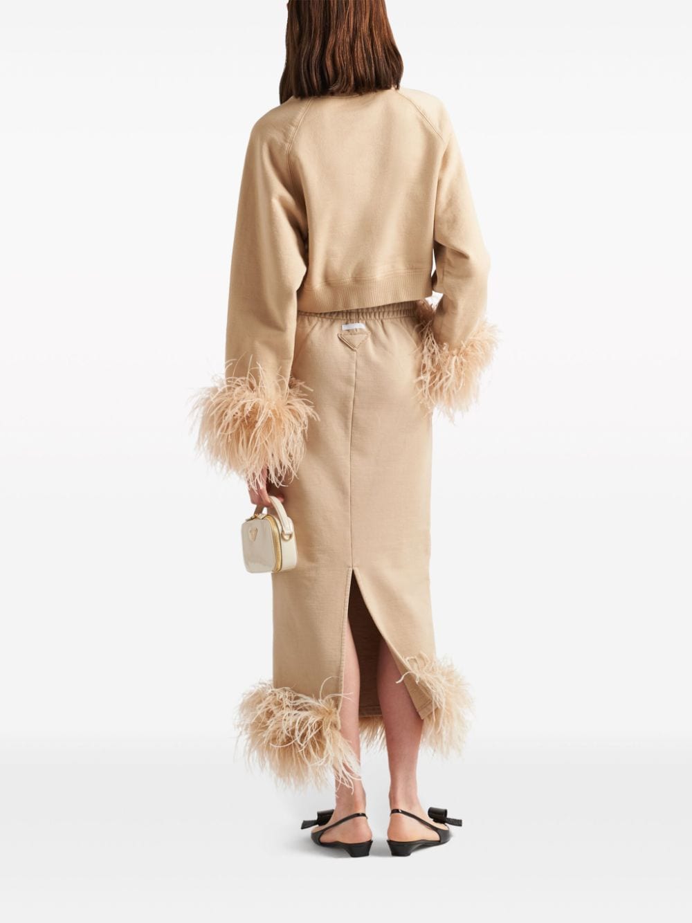 A minimal design elevated by lingerie-inspired detailing, this sweatshirt from Prada is cut from cotton to a cropped silhouette and trimmed with tonal feathers at the hem.