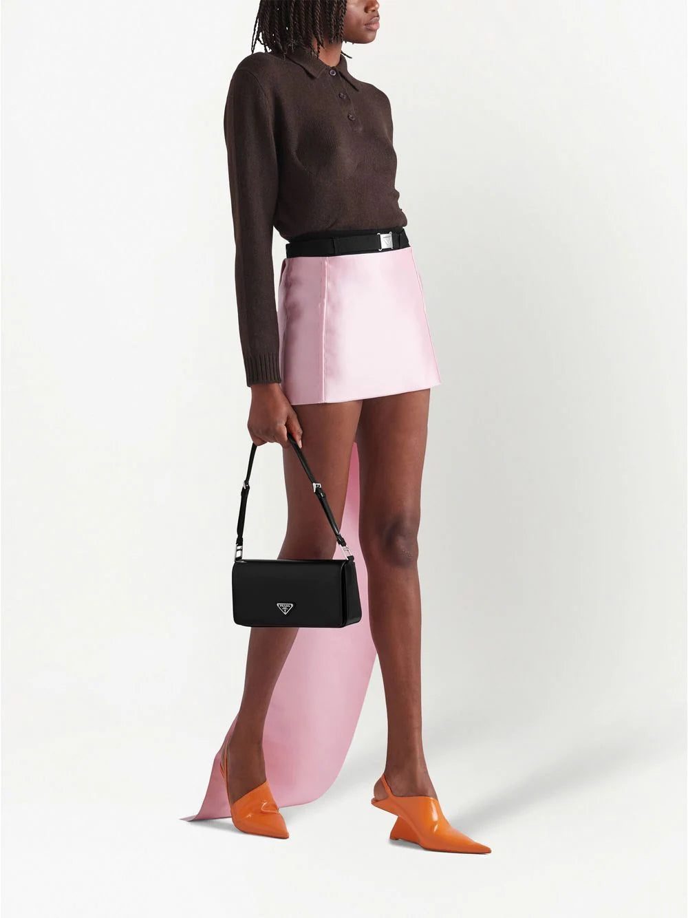 Designed with a distinctive oblong silhouette that harks back to the geometric designs of the 1990s, Prada's Femme shoulder bag is detailed with the brand's signature triangle logo plaque. It is crafted from black brushed leather - an iconic material for the label.