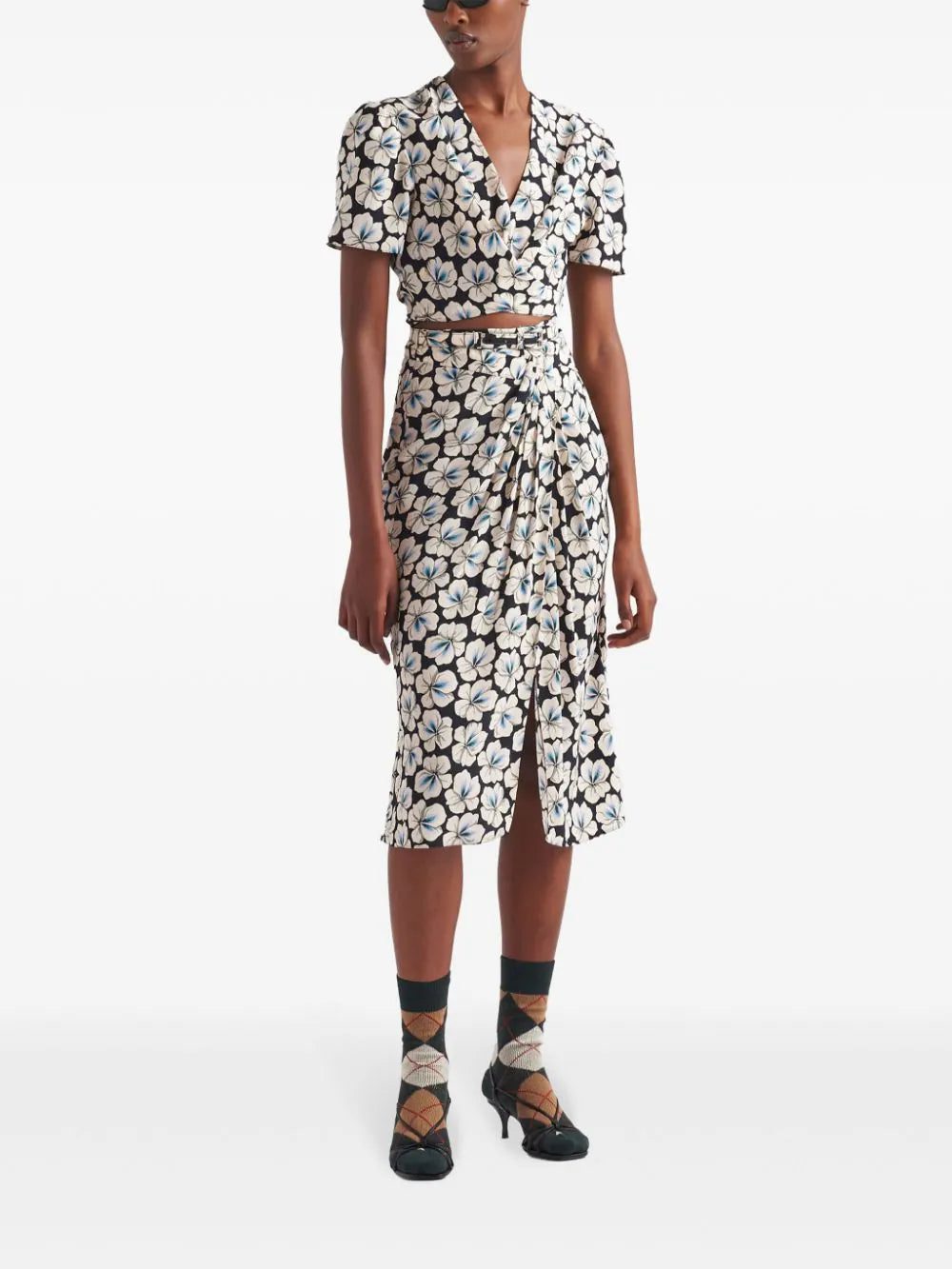 Prada floral-print cropped top