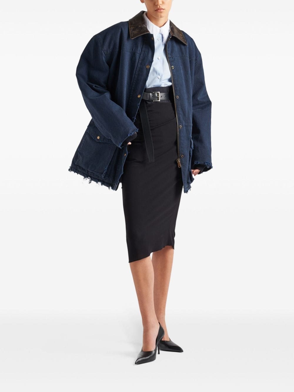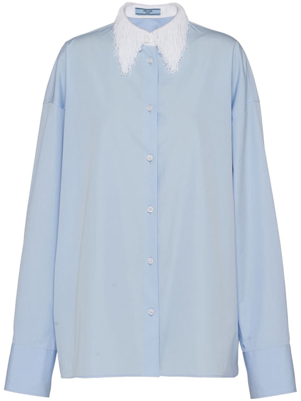 Prada elevates classic shirting with the addition of a fringed collar to this long-sleeved design.