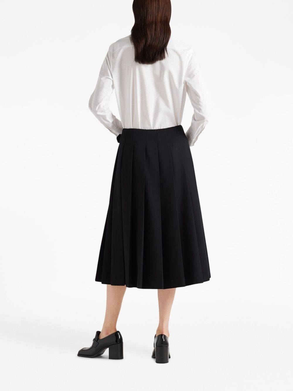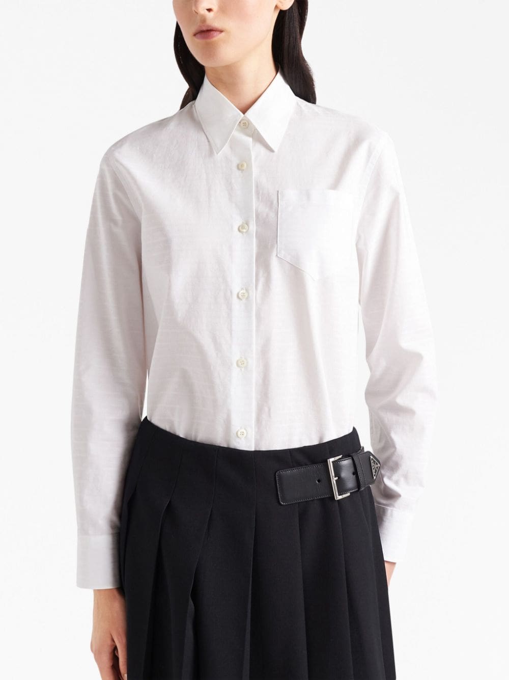 Cut from crisp white cotton and tailored to a classic shirting silhouette, Prada enhances this traditional design with subtle horizontal stripes.