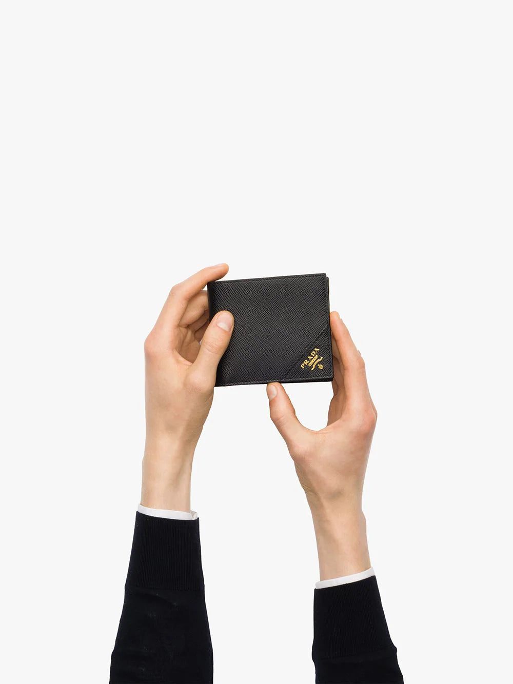 Defining luxury since 1913, Italian fashion house Prada is renowned for their uncompromised quality and timeless design vision, as showcased by this black Leather wallet. Featuring multiple interior card slots, a billfold compartment, an embossed internal logo stamp, gold-tone hardware and a metal lettering logo on the front.